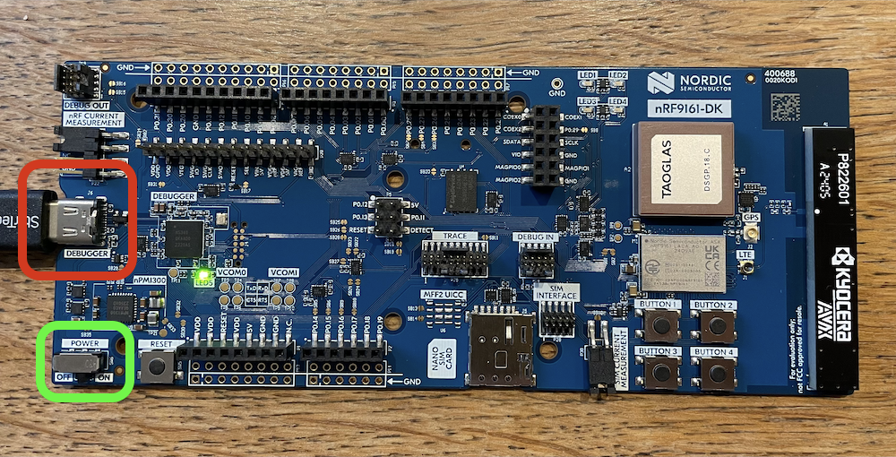 Use a USB-C cable to connect the development board to your computer. Then, set the power switch to ‘on’.