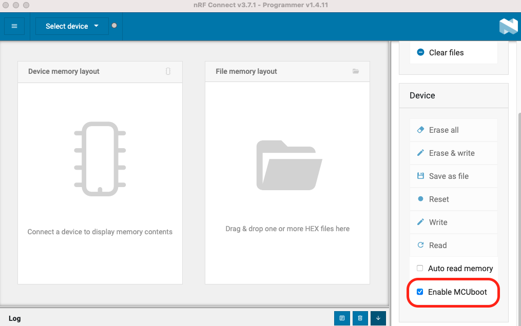 - Scroll down in the menu on the right and make sure Enable MCUboot is selected.