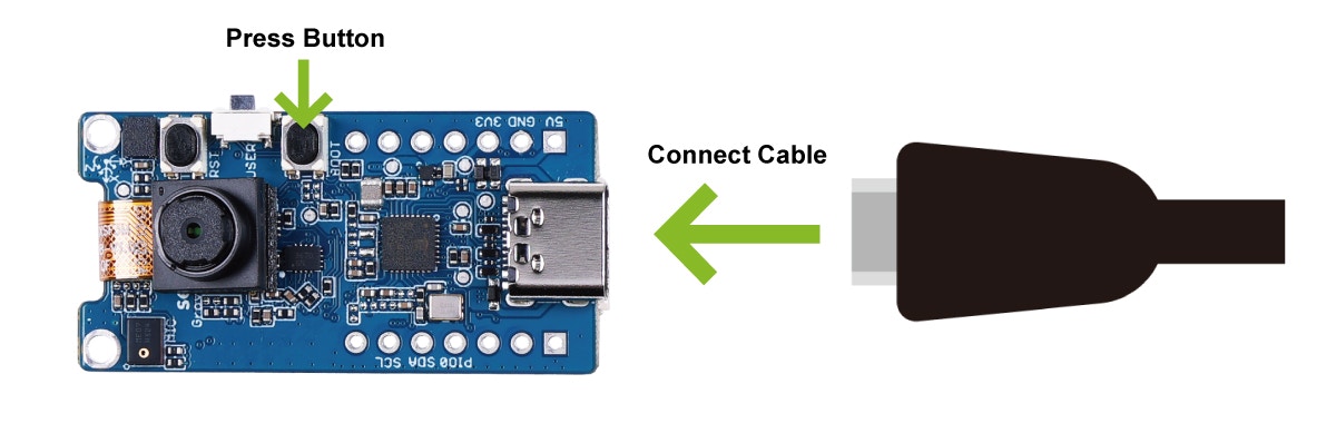 Connect the board to the PC via a USB Type-C cable while holding down the Boot button on the board