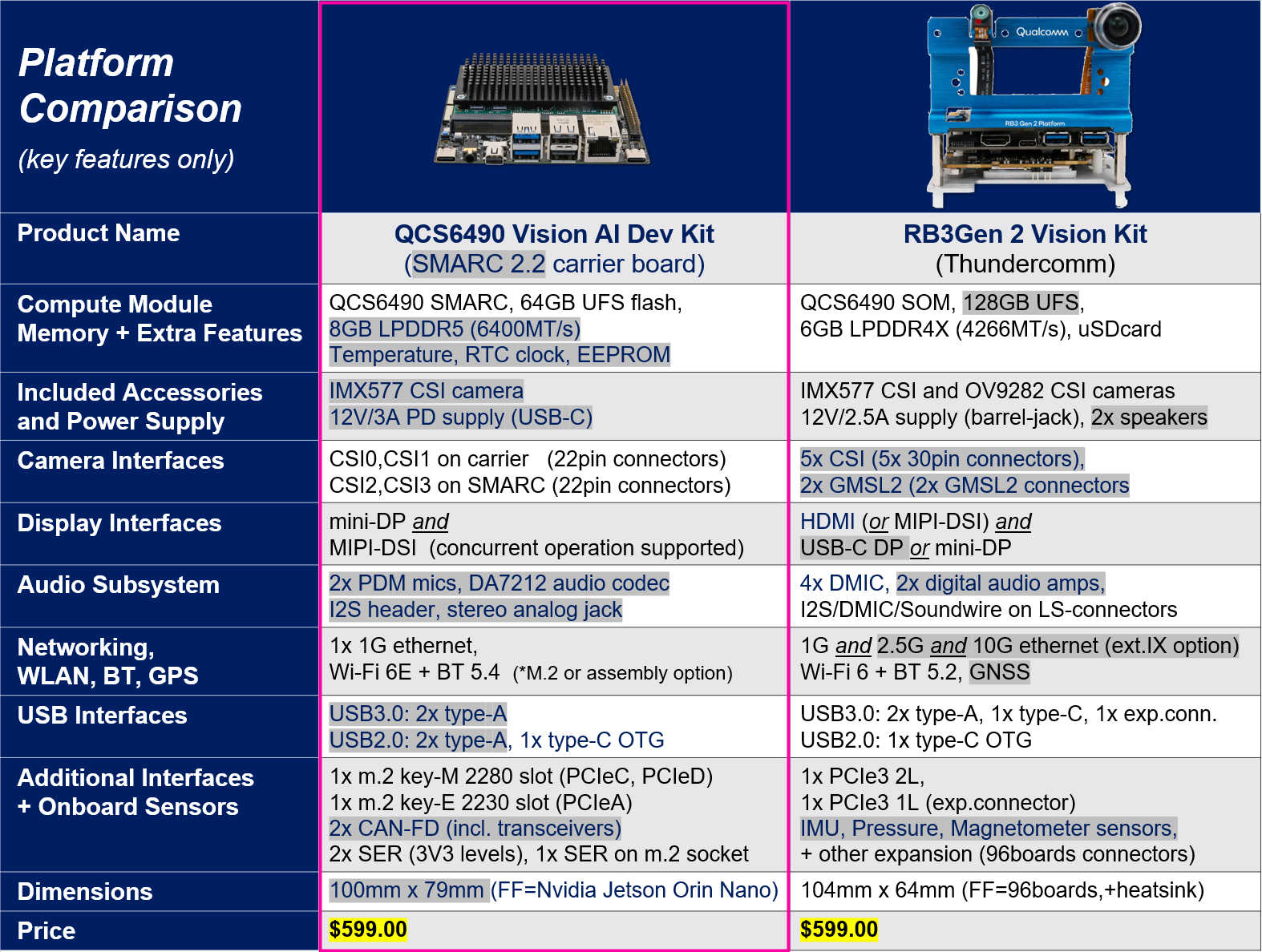 - 1x 4L and 1x 2L MIPI-CSI 22pin connectors