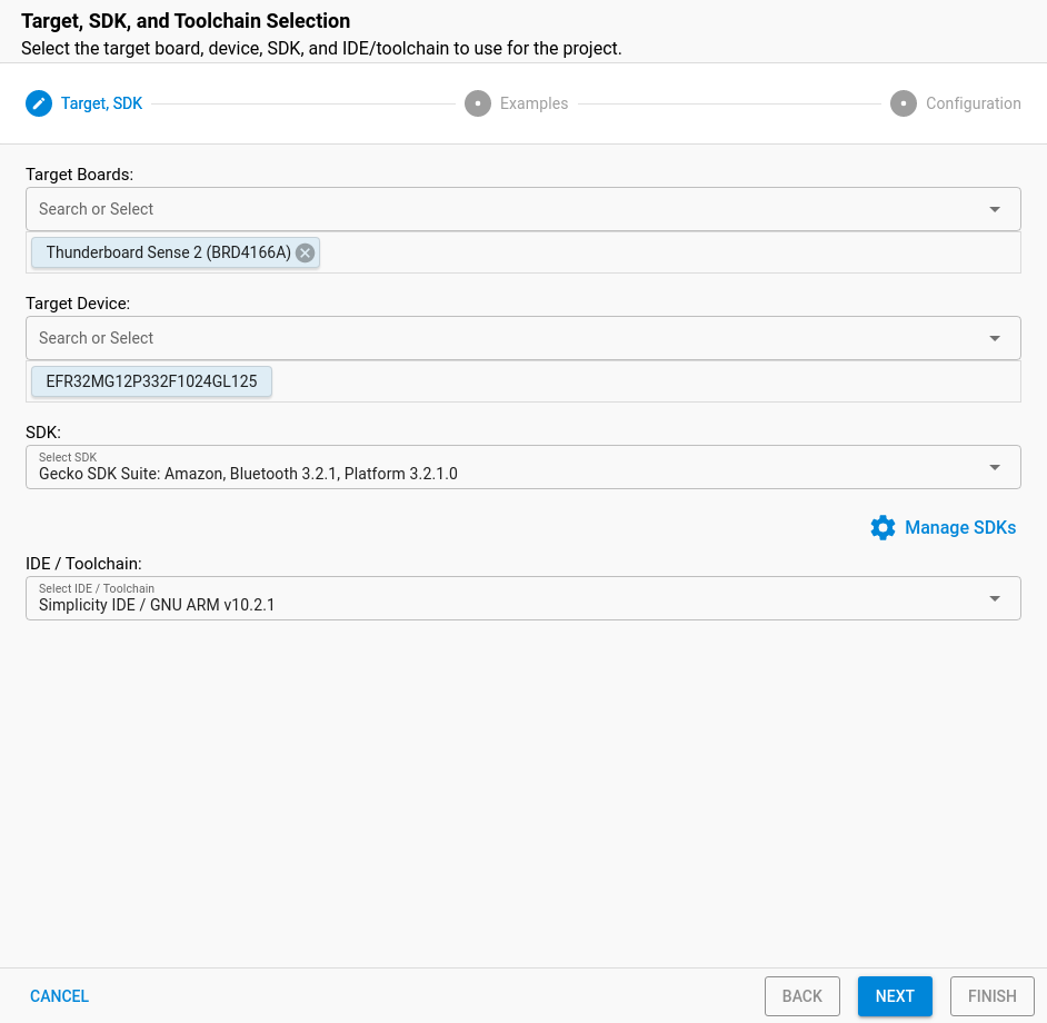 - Under ‘board’ select Thunderboard Sense 2.