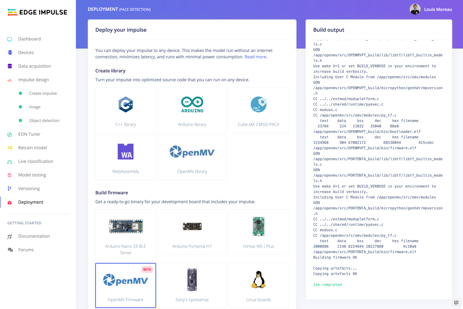 Deploying your impulse as an OpenMV library