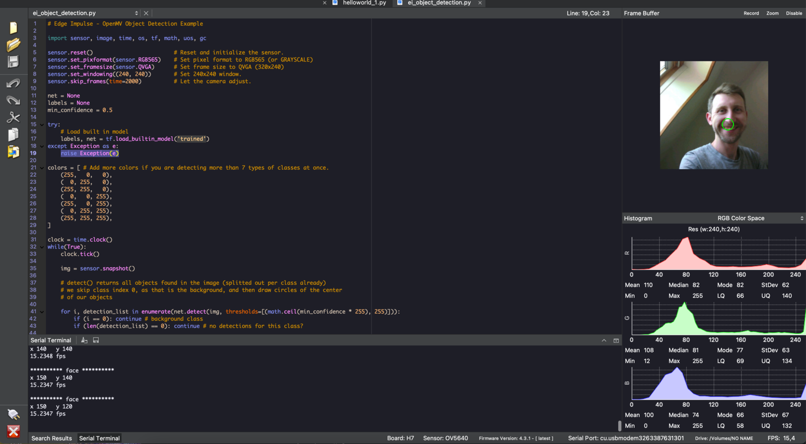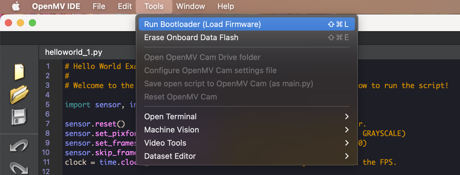 To run the script, click on the “Play” button on the bottom-left corner of the OpenMV IDE.