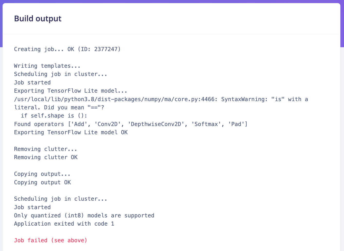 Only quantized (int8) models are supported