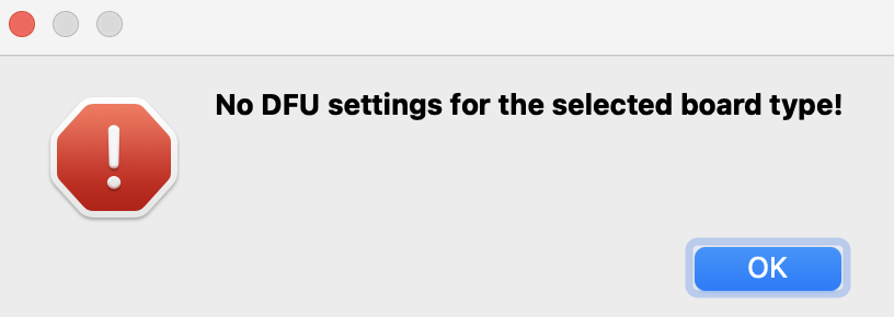 No DFU settings for the selected board type!