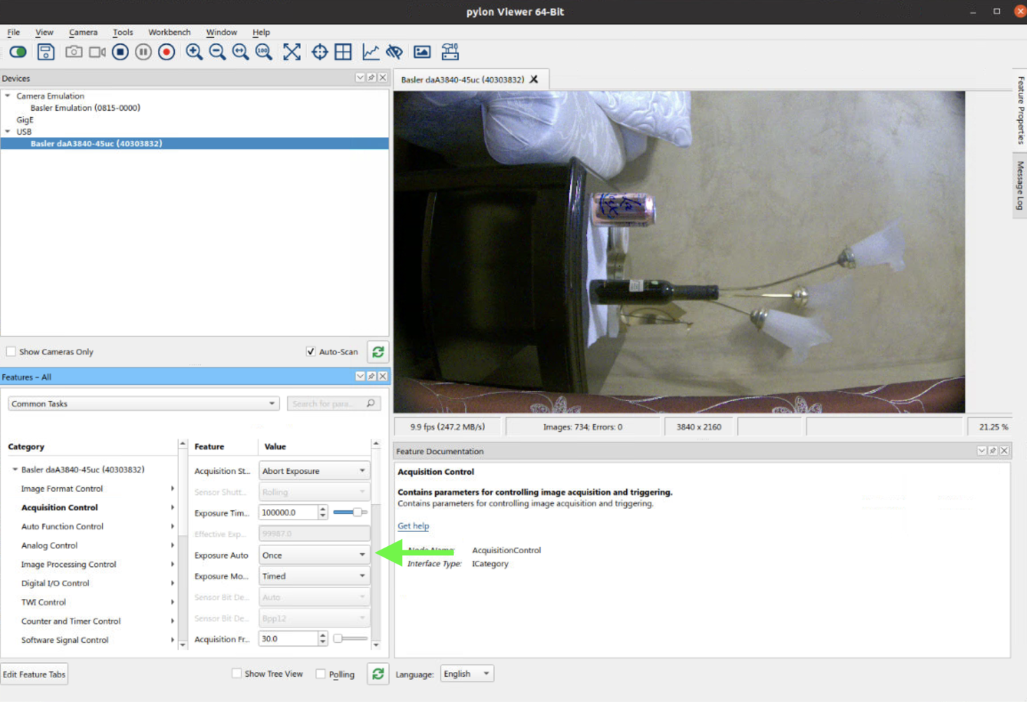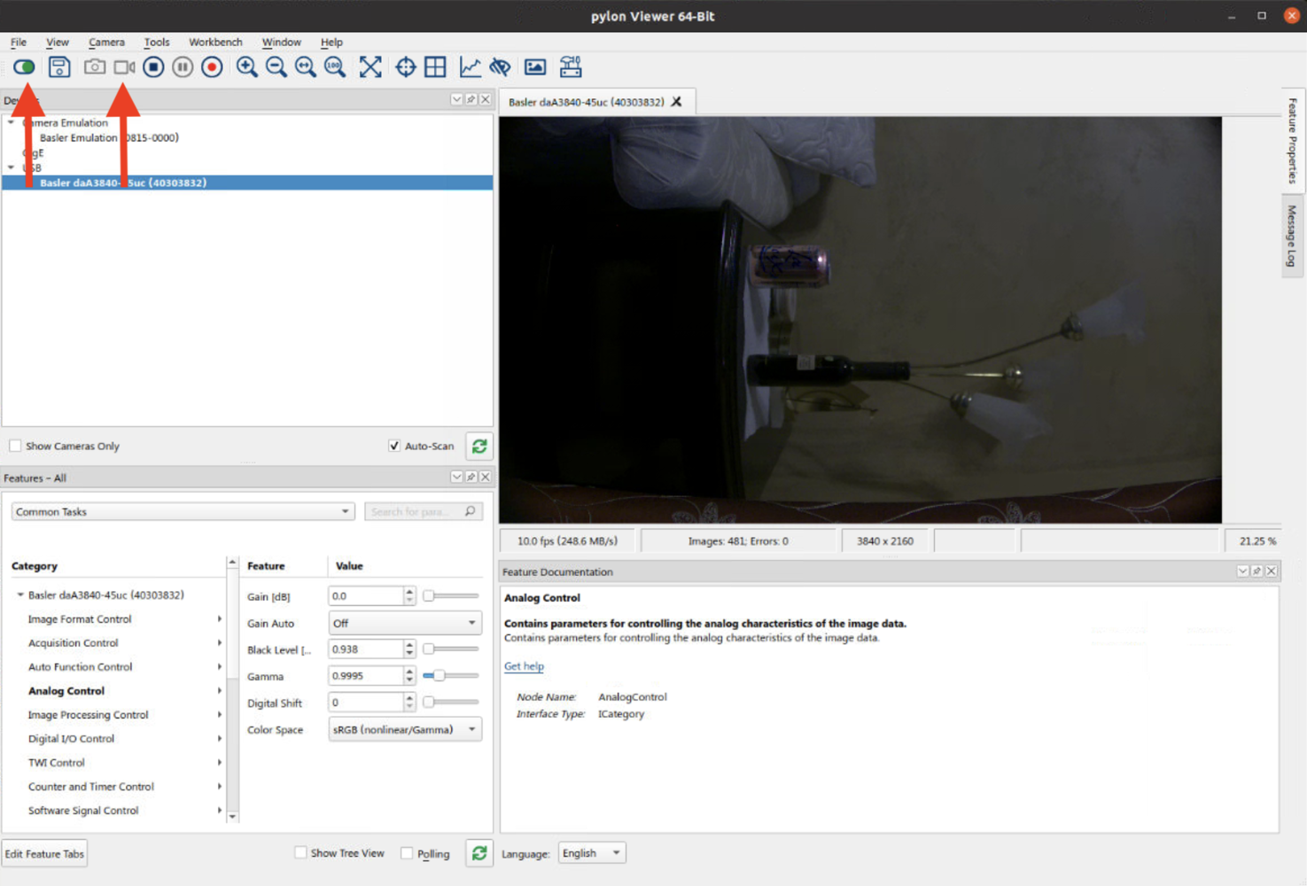 Refer to Basler pylon Viewer documentation for more settings and usage tips