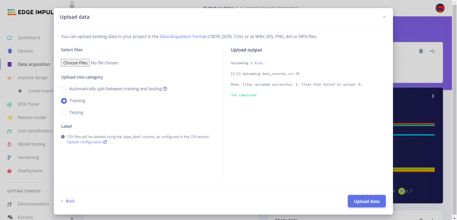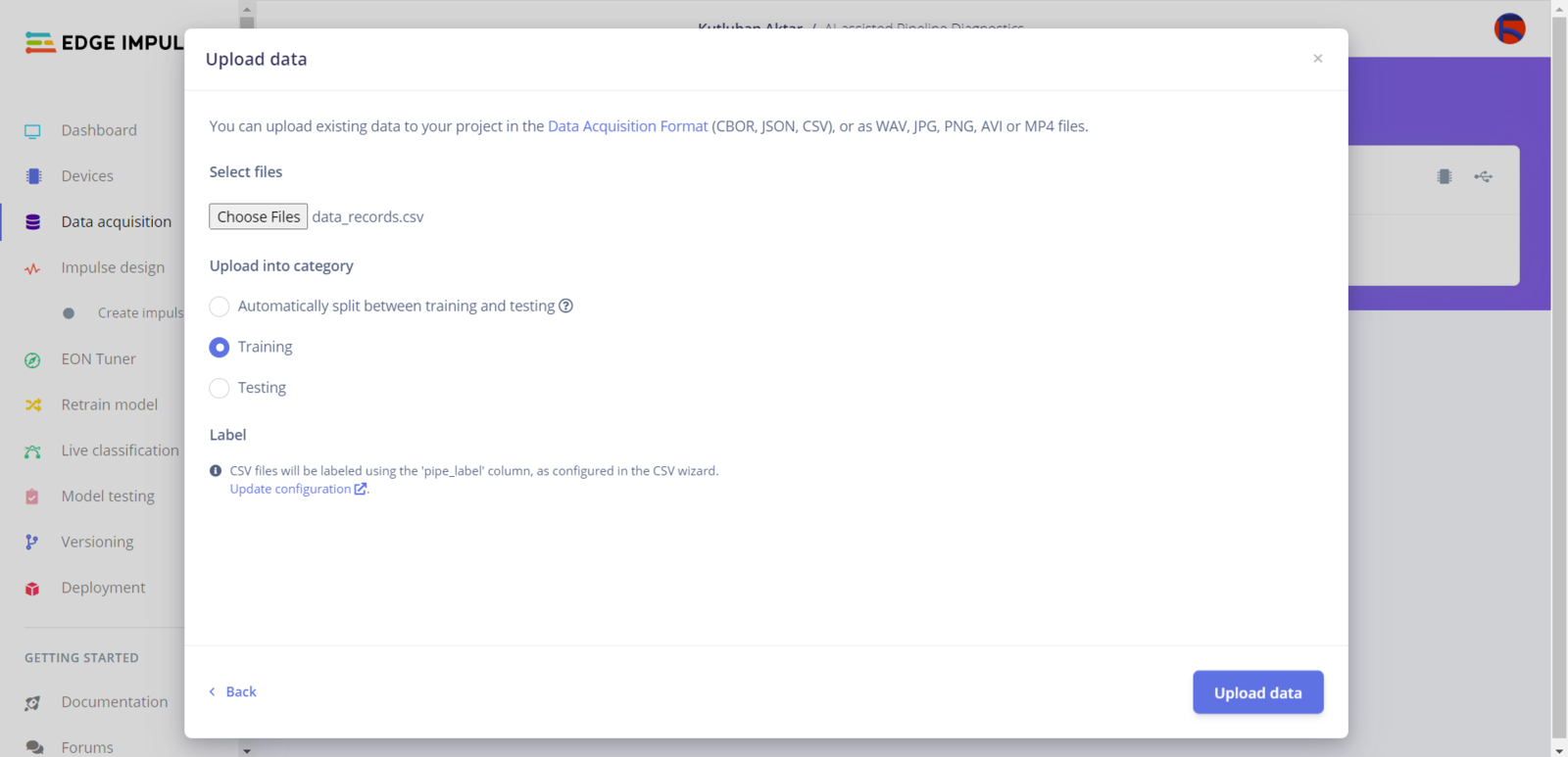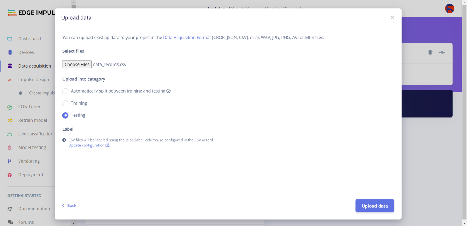Step 6.2: Uploading formatted samples to Edge Impulse