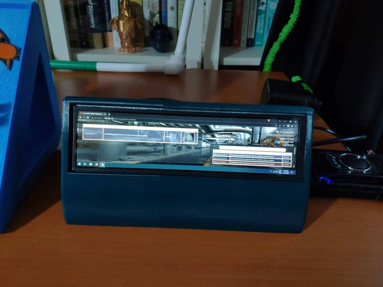 Since I decided to utilize the web application to display the collected data parameters, generate the pre-formatted CSV file from the stored data records in the database, and show the model detection results with the captured images of the deformed pipes, I wanted to create a unique apparatus to inspect the web application. Since I host this web application on my LattePanda 3 Delta, I decided to design a unique and compact LattePanda Deck compatible with not only LattePanda but also any single-board computer supporting HDMI. I decided to employ Elecrow’s 8.8” (1920*480) high-resolution IPS monitor as the screen of my LattePanda Deck. Thanks to its converter board, this monitor can be powered via a USB port and works without installing any drivers. Therefore, it is a compact plug-and-play monitor for LattePanda 3 Delta, providing high resolution and up to 60Hz refresh rate. Due to the fact that I wanted to build a sturdy and easy-to-use deck, I designed a two-part case covering the screen frame and providing a slot for the converter board. To avoid overexposure to dust and provide room for cable management, I added a mountable back cover adorned with the brand logo. I designed the two-part case and its mountable back cover in Autodesk Fusion 360. You can download their STL files below.