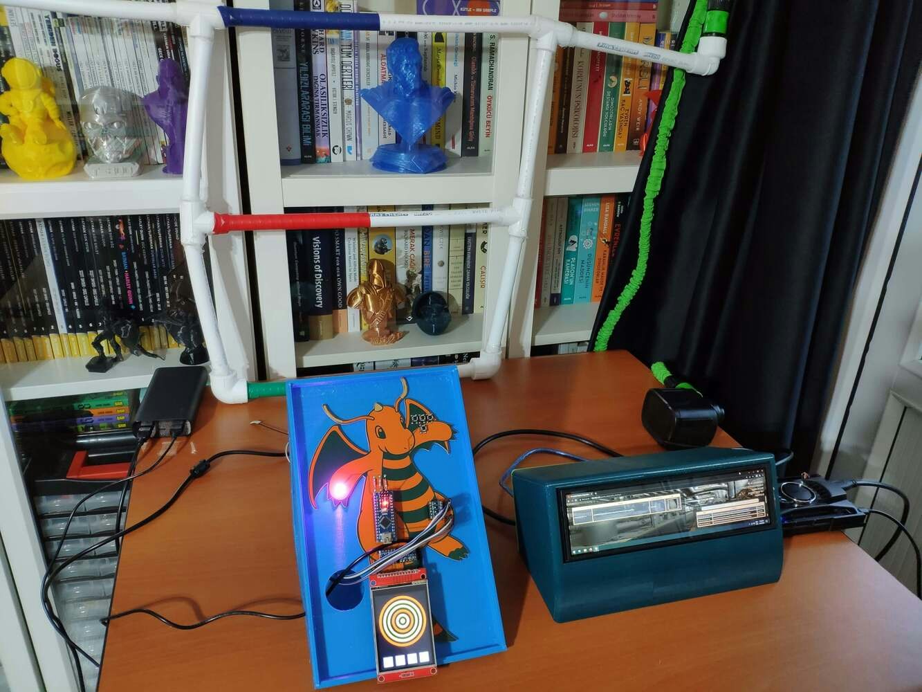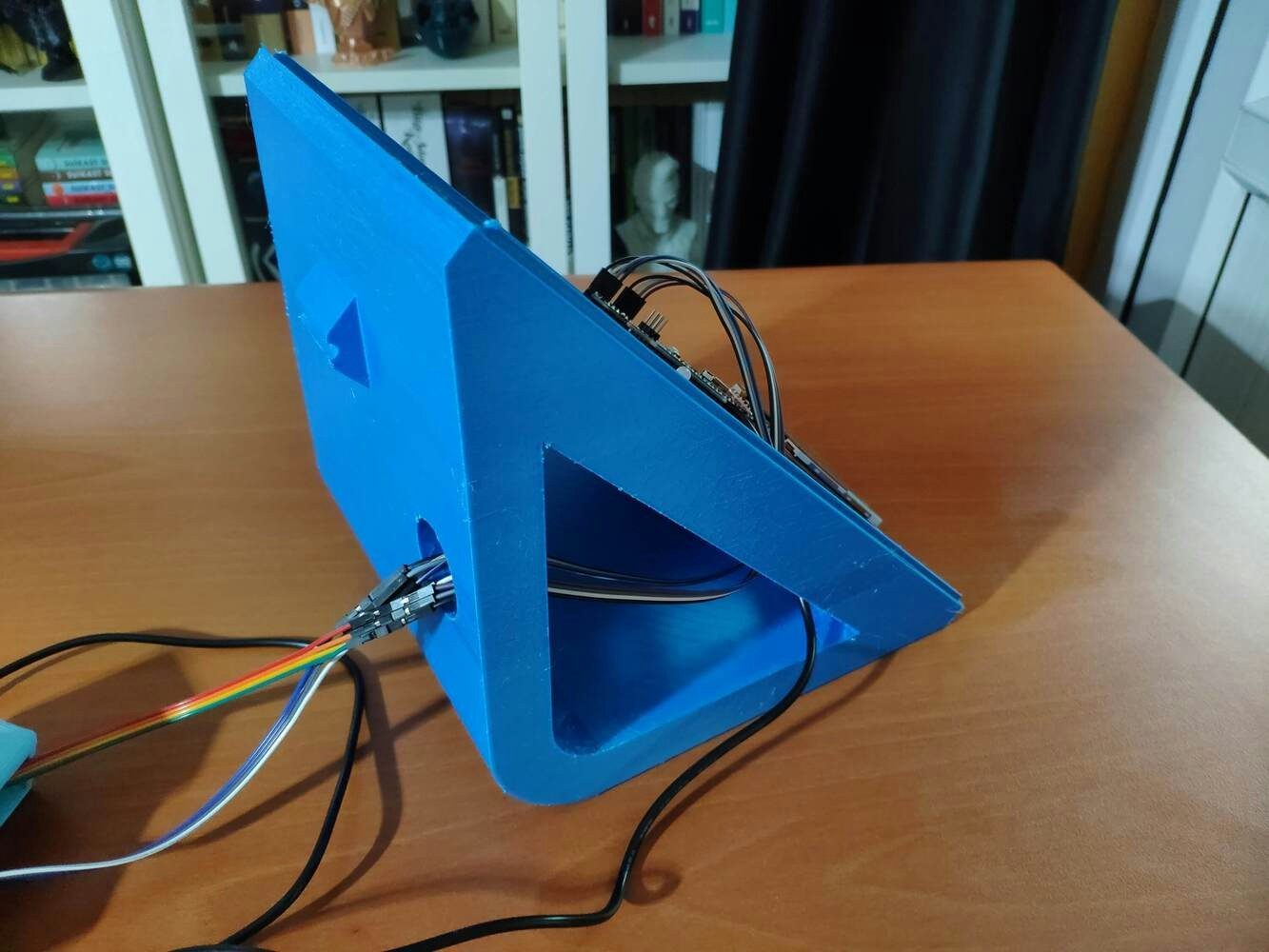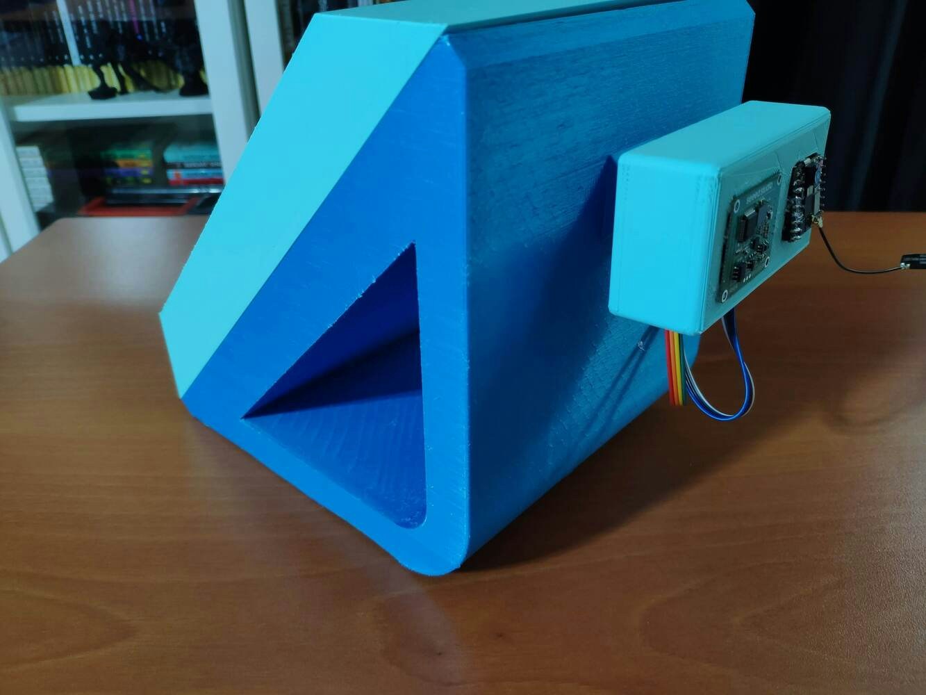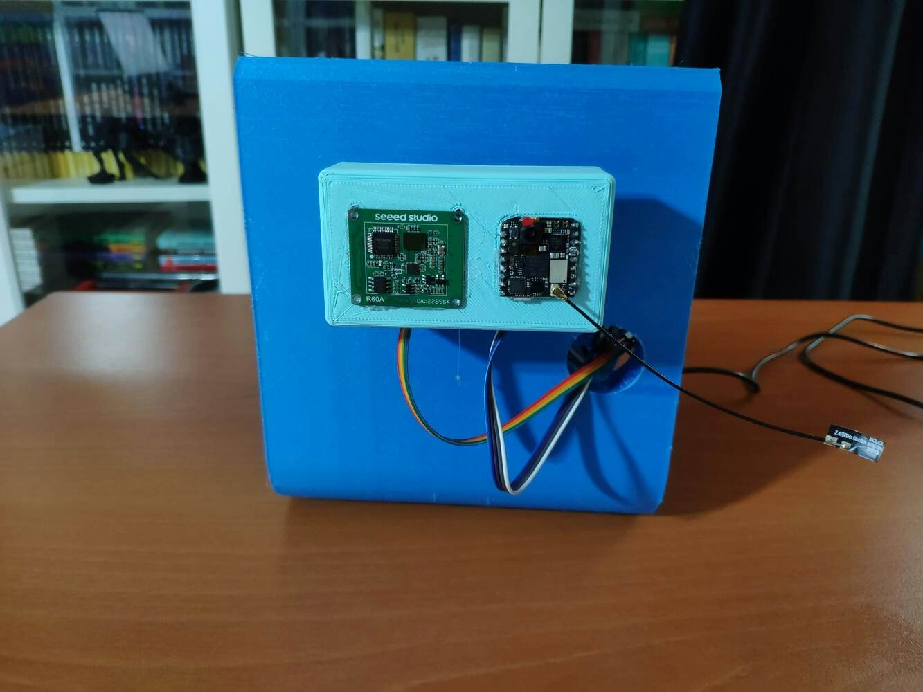 After printing all parts (models), I fastened Dragonite PCB to the diagonal top surface of the main case via a hot glue gun. I placed Nicla Vision and the 60GHz mmWave module in the modular camera holder. Then, I attached the camera holder to the main case via its circular snap-fit joint. Finally, I inserted the sliding front cover via the dents on the diagonal top surface of the main case.
