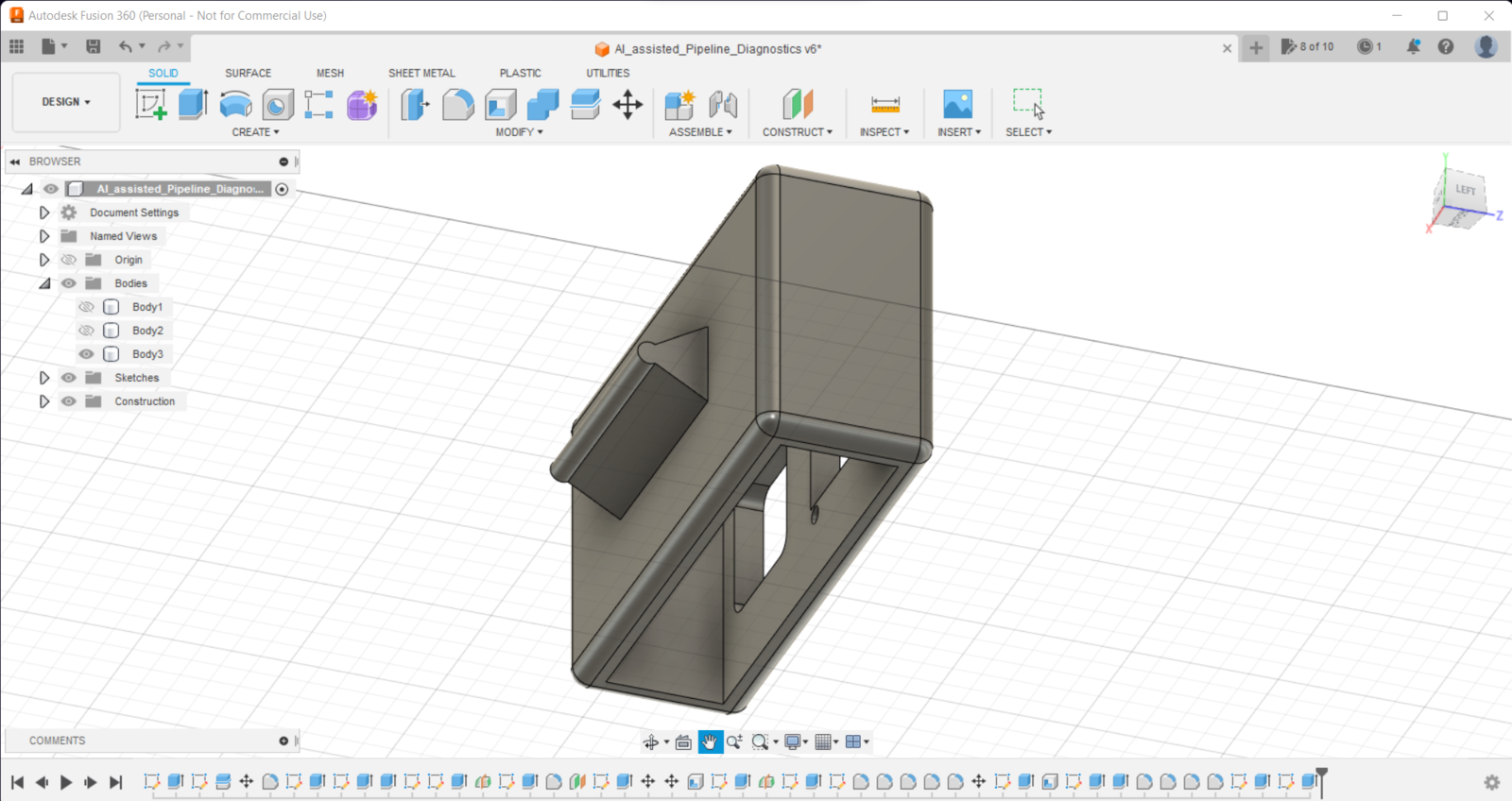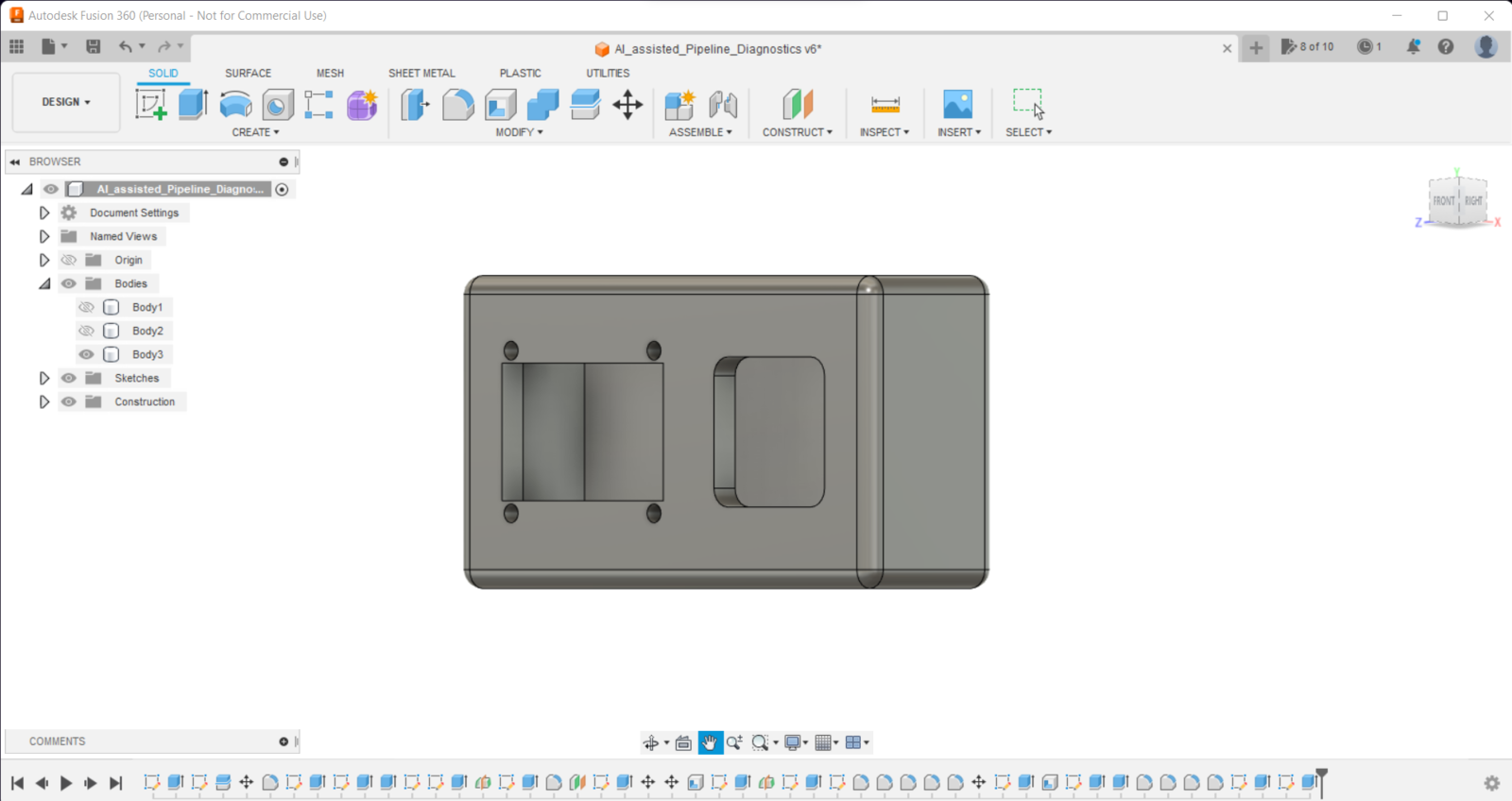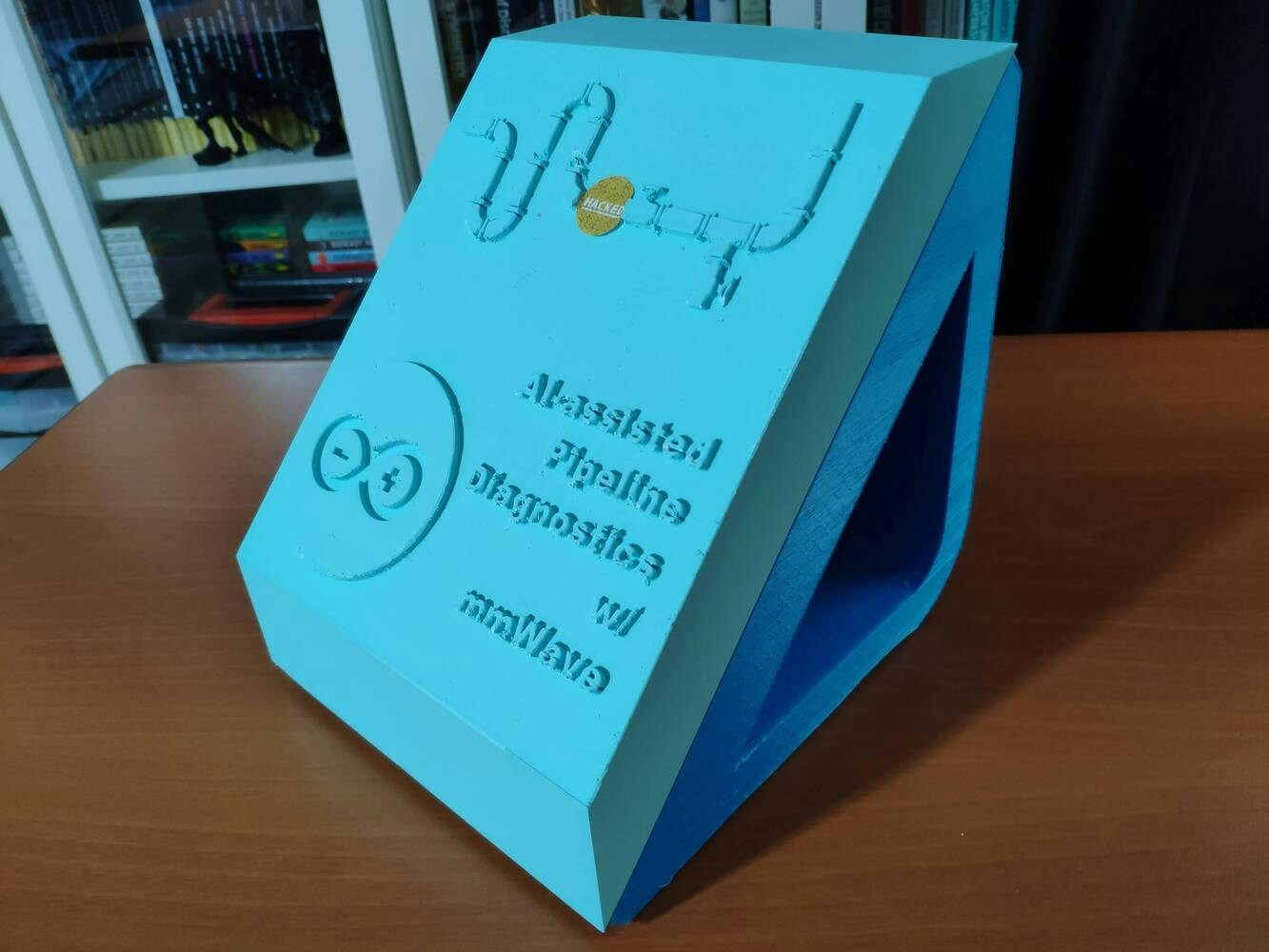 Since I focused on building a user-friendly and accessible mechanism that collects mmWave data parameters and runs a neural network model to inform the user of the diagnosed pipeline defects via a PHP web application, I decided to design a rigid and compact case allowing the user to place the 60GHz mmWave module and position the built-in GC2145 camera on Nicla Vision effortlessly. To avoid overexposure to dust and prevent loose wire connections, I added a sliding front cover aligned proportionally to the diagonal top surface. Then, I designed a modular camera holder mountable to the back of the case via a circular snap-fit joint. Also, I decided to emboss pipe icons and the Arduino symbol on the sliding front cover to emphasize the edge pipeline diagnostic processes. Since I needed to attach the Dragonite PCB to the main case, I decided to design an oblique structure for the case. In that regard, I was able to fit the PCB in the case without enlarging the case dimensions. I designed the main case, its sliding front cover, and the modular camera holder in Autodesk Fusion 360. You can download their STL files below.