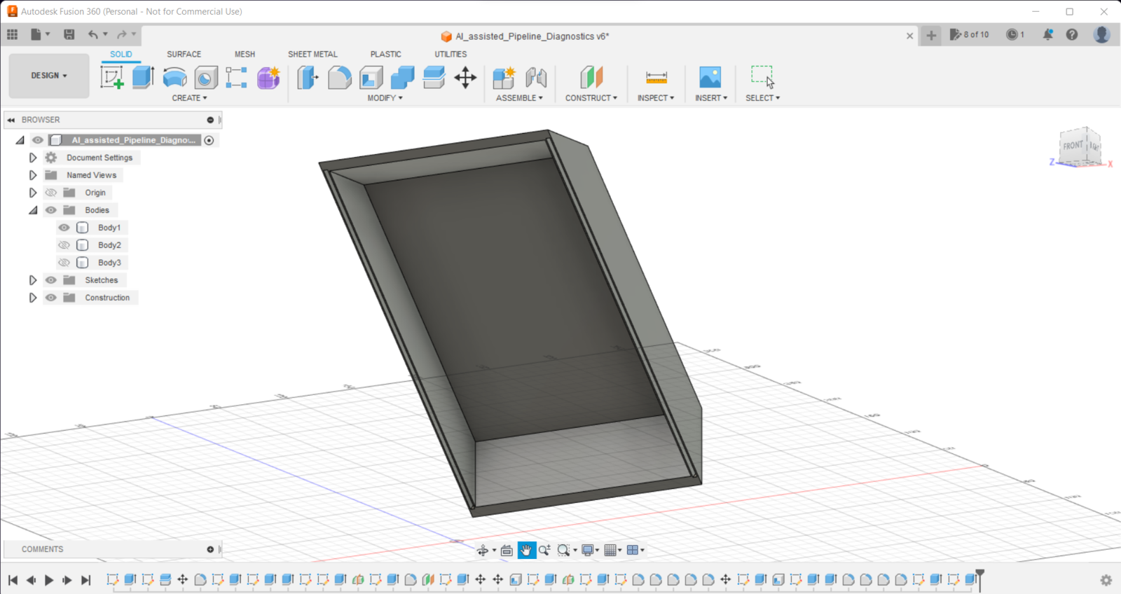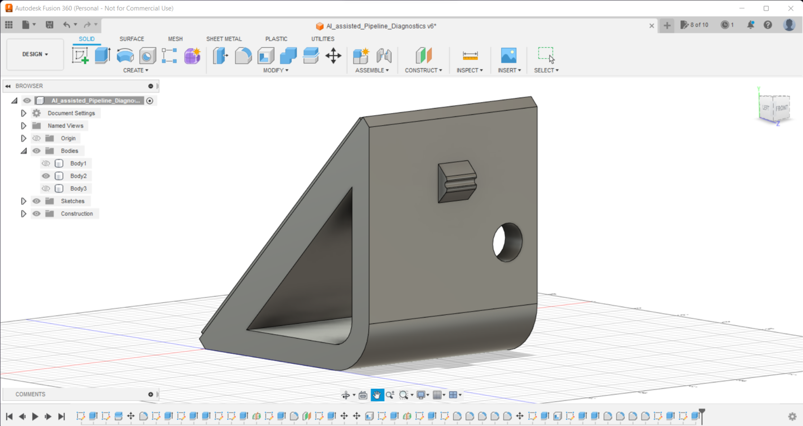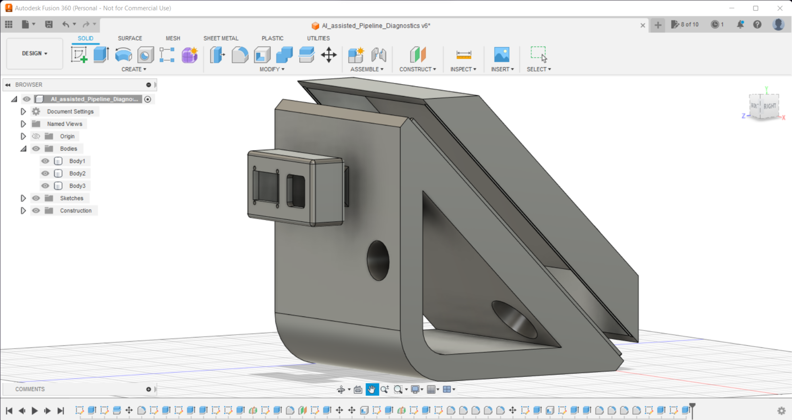 Since I focused on building a user-friendly and accessible mechanism that collects mmWave data parameters and runs a neural network model to inform the user of the diagnosed pipeline defects via a PHP web application, I decided to design a rigid and compact case allowing the user to place the 60GHz mmWave module and position the built-in GC2145 camera on Nicla Vision effortlessly. To avoid overexposure to dust and prevent loose wire connections, I added a sliding front cover aligned proportionally to the diagonal top surface. Then, I designed a modular camera holder mountable to the back of the case via a circular snap-fit joint. Also, I decided to emboss pipe icons and the Arduino symbol on the sliding front cover to emphasize the edge pipeline diagnostic processes. Since I needed to attach the Dragonite PCB to the main case, I decided to design an oblique structure for the case. In that regard, I was able to fit the PCB in the case without enlarging the case dimensions. I designed the main case, its sliding front cover, and the modular camera holder in Autodesk Fusion 360. You can download their STL files below.