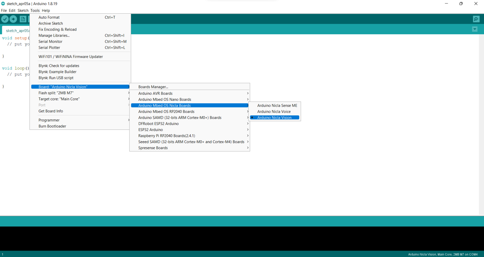Step 4: Setting up Nicla Vision on Arduino IDE