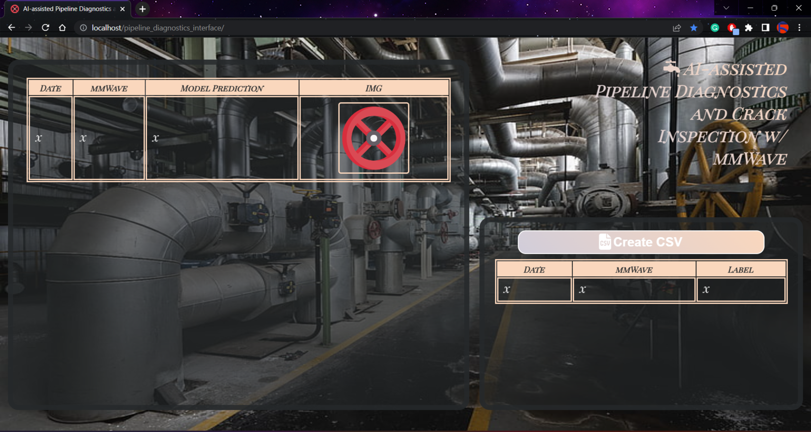 Data collection | AI-assisted Pipeline Diagnostics w/ mmWave Data collection (web app interface) | AI-assisted Pipeline Diagnostics w/ mmWave Experimenting with the model | AI-assisted Pipeline Diagnostics w/ mmWave Experimenting with the model (web app interface) | AI-assisted Pipeline Diagnostics w/ mmWaveFurther Discussions