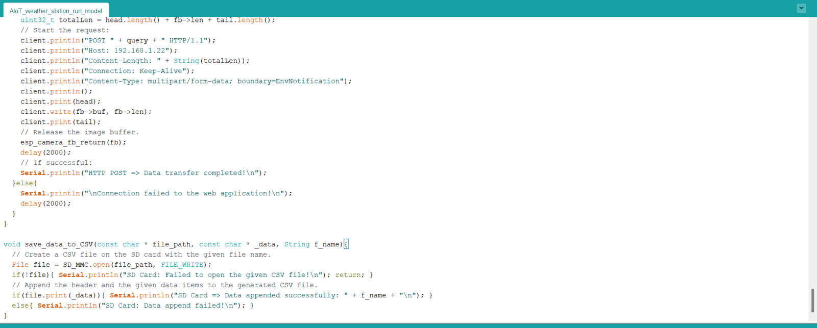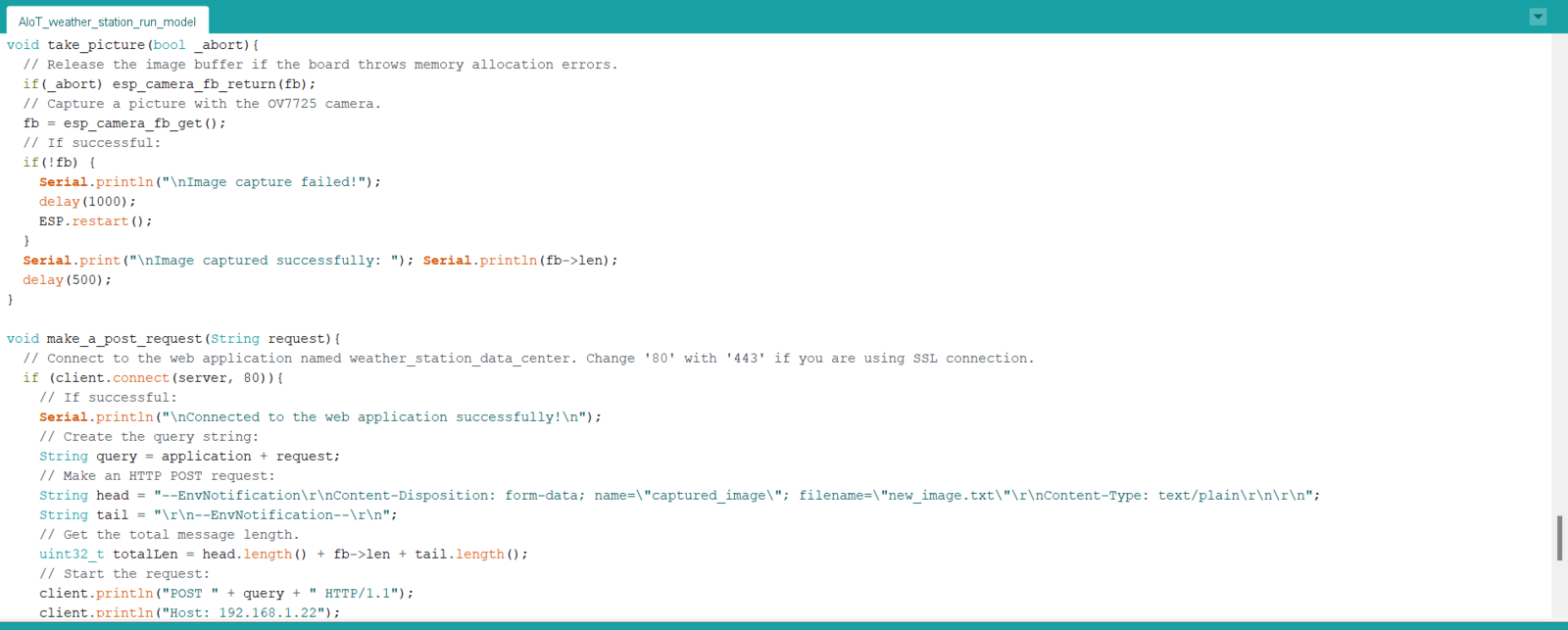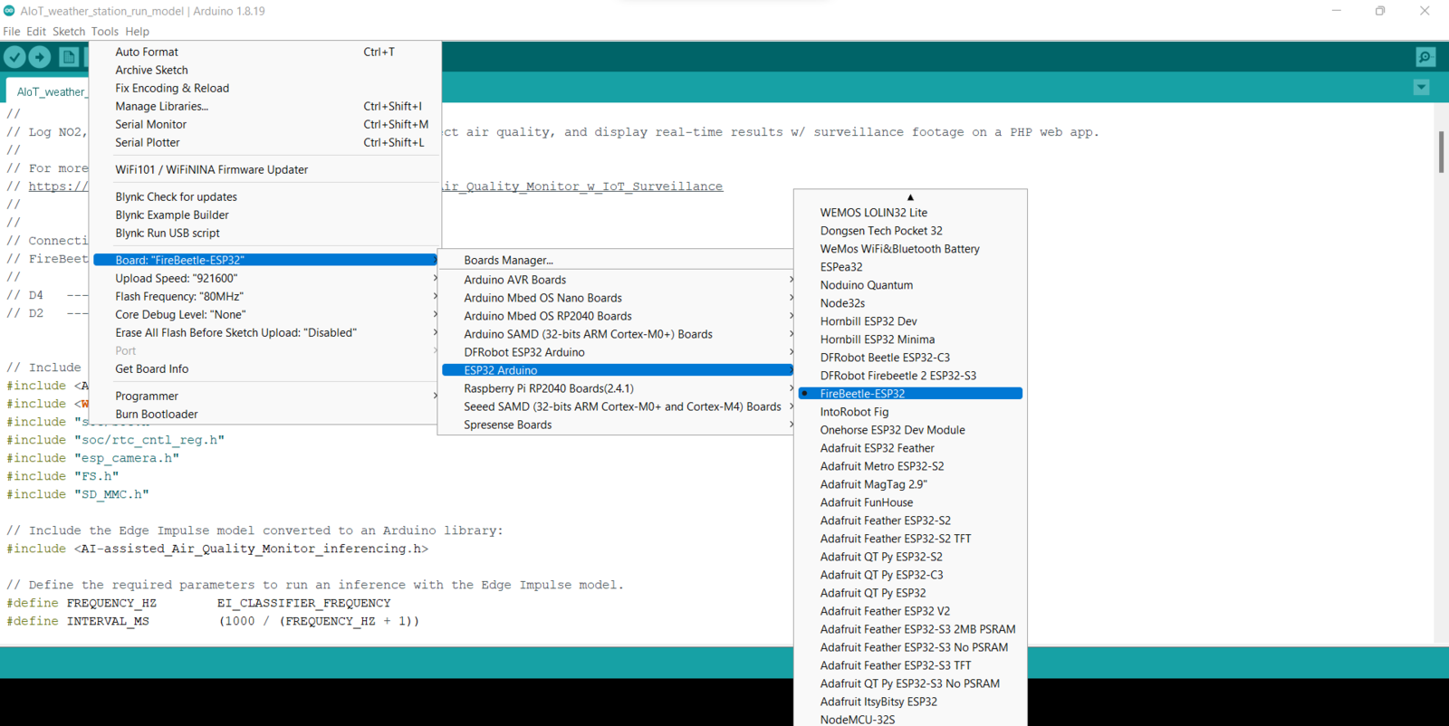 Step 7: Running the model on FireBeetle ESP32 to forecast air pollution levels and transferring the model results w/ surveillance footage via POST requests