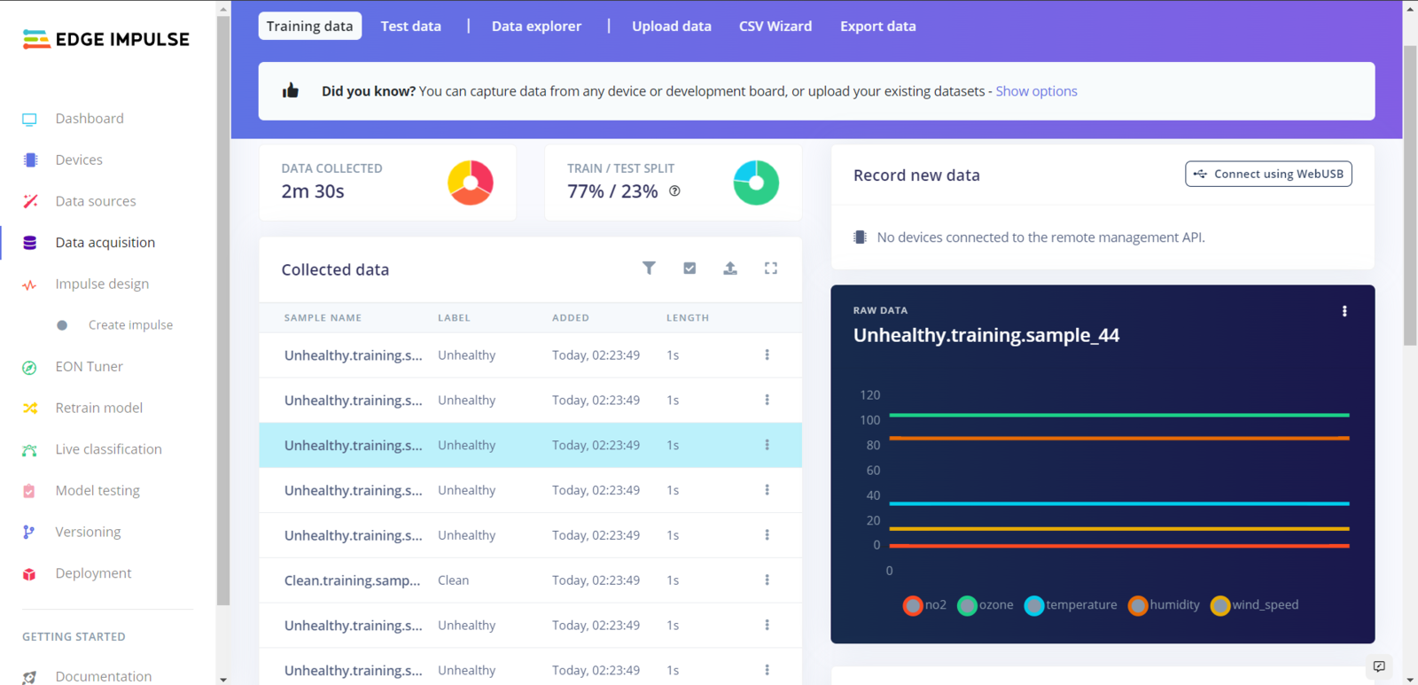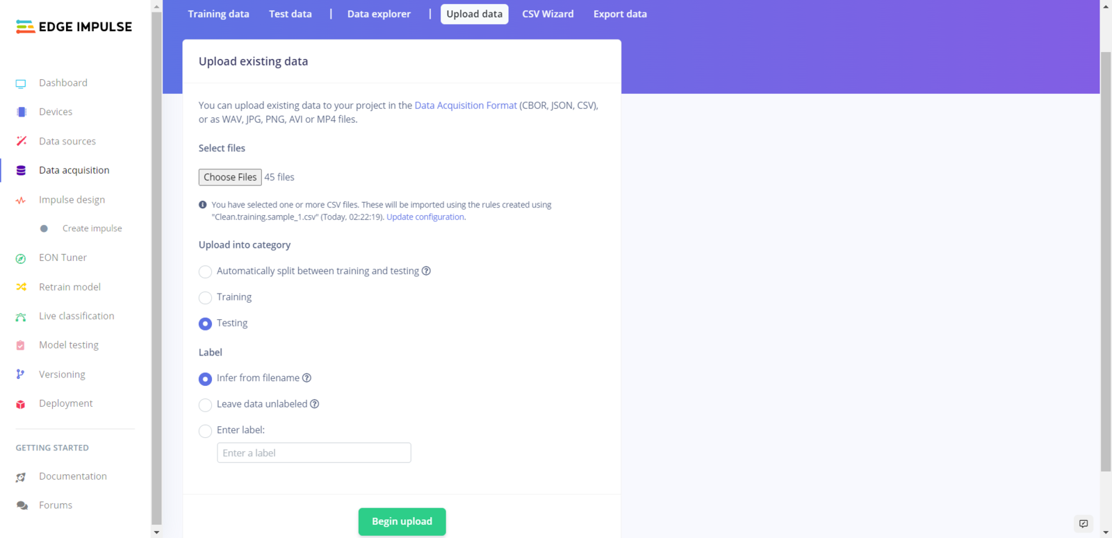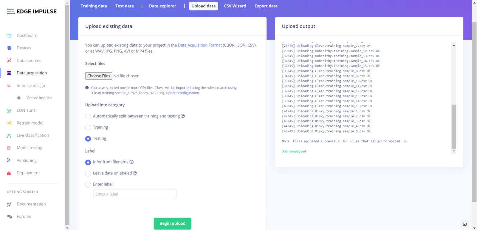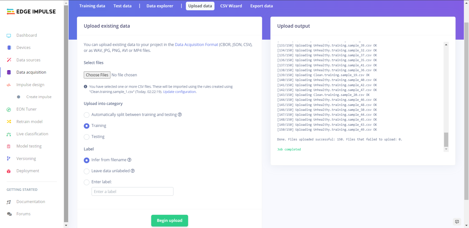 Step 5.2: Uploading formatted samples to Edge Impulse