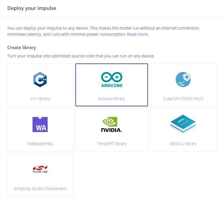 A great way of going about testing our model is to navigate to the Model Testing tab. You will be presented with the samples stored in the Testing data pool. Click on Classify all to run all this data through your Impulse. The Model testing tab provides the user the ability to test out and optimize the model before going through the effort of deploying it back on the edge. The possibility of going back and adding Training data, tweaking the DSP and Learning block, and fine-tuning the model shaves off an enormous amount of development time when creating an edge computing application.Deploying the Model as Arduino Library