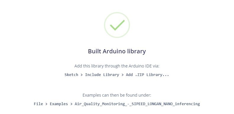 Once you are happy with the performance of the TinyML model, it’s time to deploy it back on the edge. Navigate to the Deployment tab, select Arduino library, and click Build.