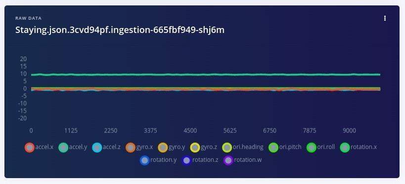 This will launch a wizard that will prompt you to log in and select the Edge Impulse project. The --clean tag is used when you want to switch to a new project in case you’ve previously connected a project to the Data Forwarder. You will also have to name the device and the axes of your sensor (in this case the axes are in the following order: accel.x, accel.y, accel.z, gyro.x, gyro.y, gyro.z, ori.heading, ori.pitch, ori.roll, rotation.x, rotation.y, rotation.z, rotation.w). You should now see Nicla Sense in the Devices menu on Edge Impulse.
