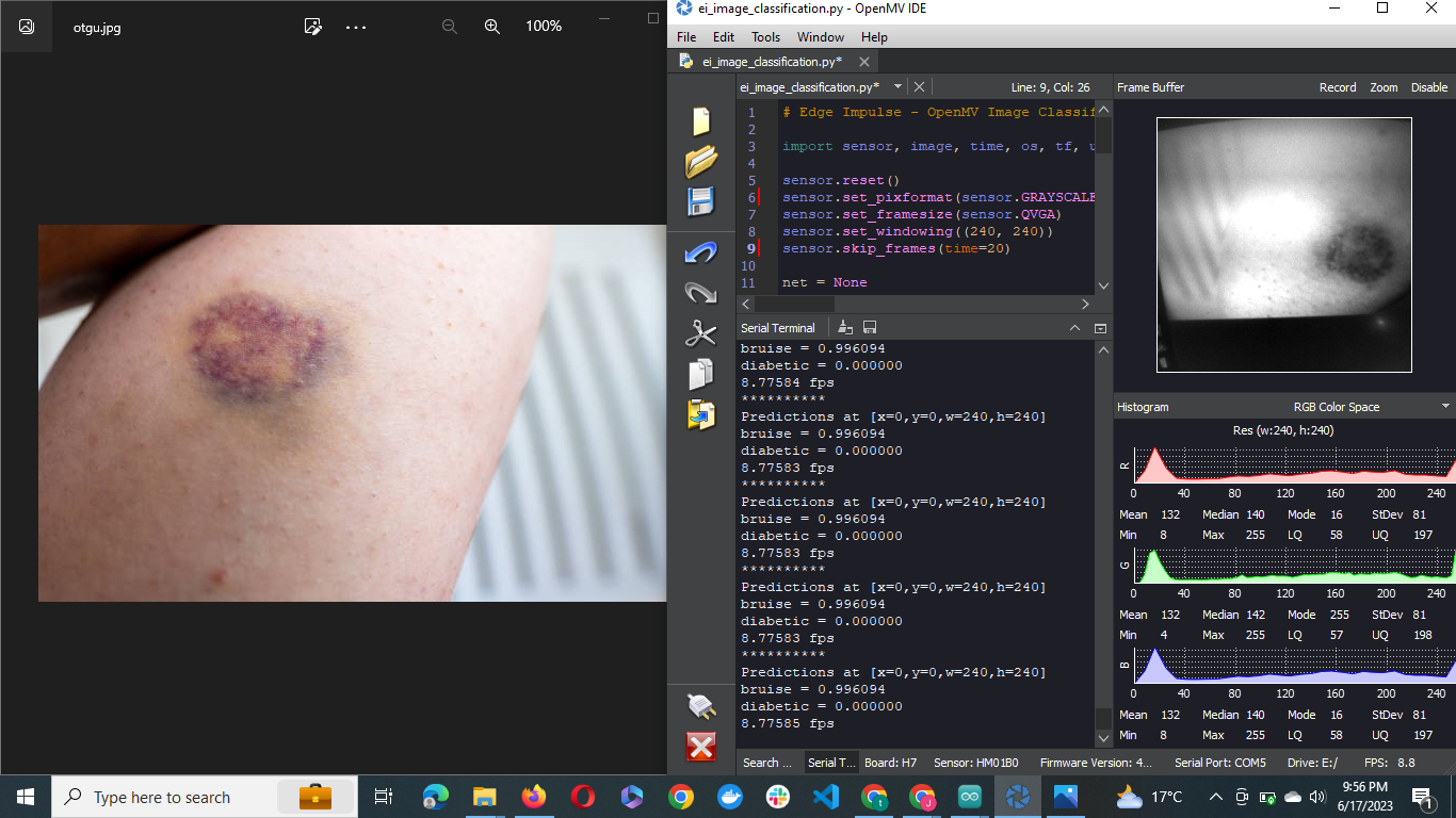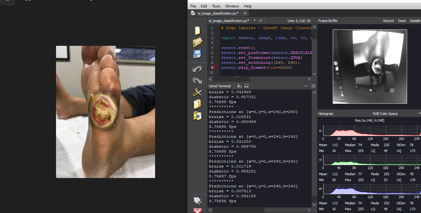 In this project, we have seen how it is possible to leverage AI-powered cameras to classify wounds, which offers a great advantage in reducing the time taken to diagnose wounds as well as reduce cost associated with the process. This project could be scaled further by sending the inference results over a web platform for results to be conveniently accessed by clinicians. This enables accurate administration of treatment to patients regardless of their location and mitigates the severe effects of misdiagnosis, leading to improved human health, especially in rural areas without local expertise. Adding more dataset images in order to improve the model performance on diabetic wound classification would also be helpful. With Bring Your Own Model on Edge Impulse, ML engineers can build robust, state of the art models and deploy to edge devices. This creates a huge opportunity to solve challenges with Machine Learning and deploy to suitable hardware devices. This project is Public, you can clone and modify it for your own use case, as well as further optimize it.