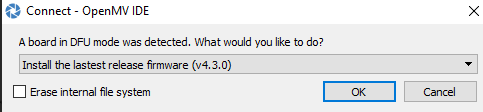 First, Install both the Arduino IDE and OpenMV IDE. OpenMV IDE is used to view the camera output and run inference scripts, while the Arduino IDE is used to update the bootloader on the Portenta H7. Follow the steps below to ensure you have the latest version of the bootloader: Connect the Vision Shield to the Portenta H7. Connect the Board to your computer with a USB-C cable. Open your Arduino IDE, make sure your board is connected, then click Files > Examples > STM_32H747_System > STM_32H747_manageBootloader .
