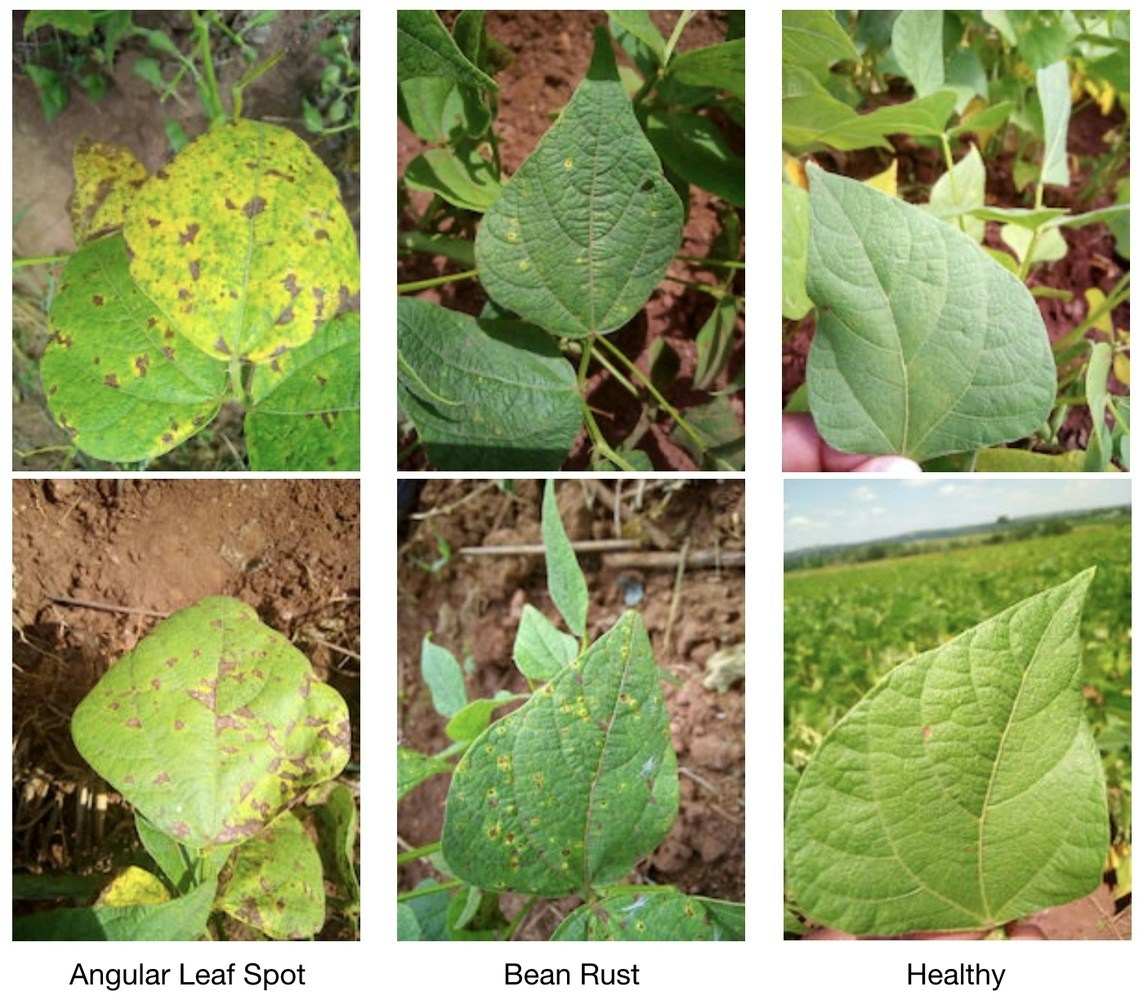 The dataset is of leaf images taken in the field in different districts in Uganda by the Makerere AI Lab in collaboration with the National Crops Resources Research Institute (NaCRRI), the national body in charge of research in agriculture in Uganda [1]. Figure 1 shows an example of each of three classes and their corresponding label. The data is of leaf images representing 3 classes: the healthy class of images, and two disease classes including Angular Leaf Spot and Bean Rust diseases. In total 600 images were taken from the dataset; 200 images for each class.