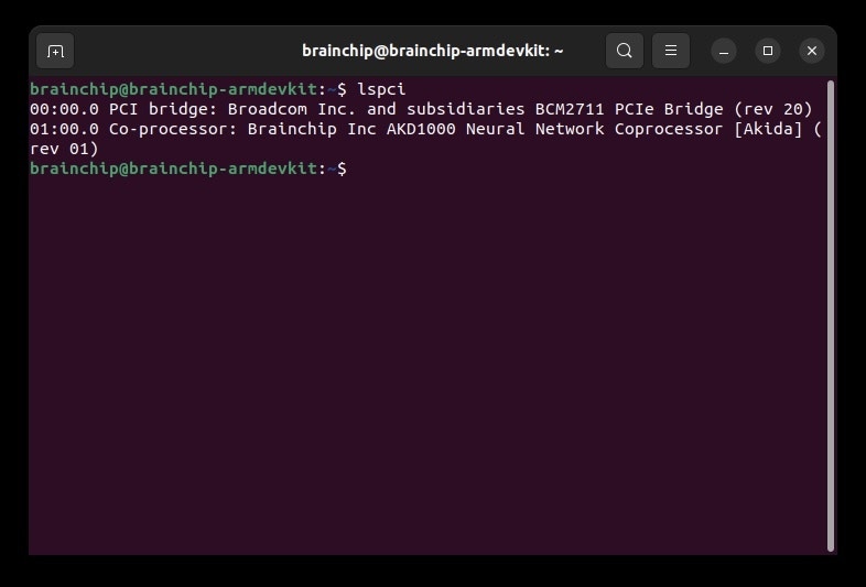 build-essentials and linux-headers packages need to be installed on the system first, and then the Akida driver can be downloaded from the Brainchip GitHub repository via the command line: