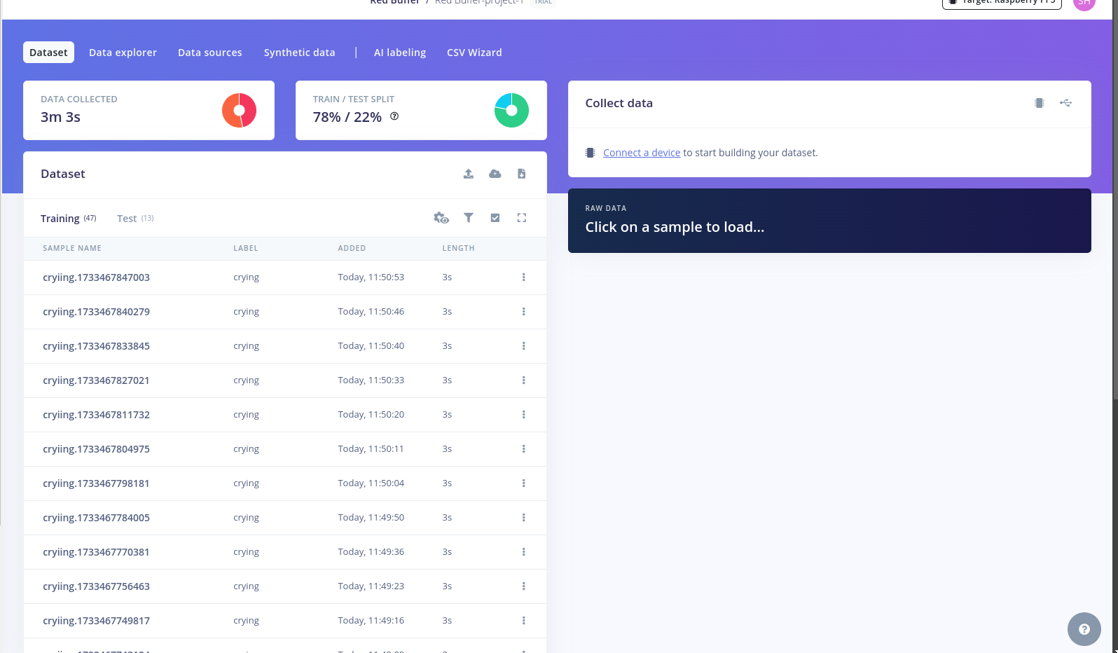 To begin, visit Edge Impulse and log in to your account. If you don’t already have an account, create one for free. For this project, we’ll use the Enterprise plan to access advanced features such as synthetic data generation. You can request an expert-led trial to explore the functionality. After logging in, create a new project and name it something meaningful, like Baby Audio Classification.Data Collection