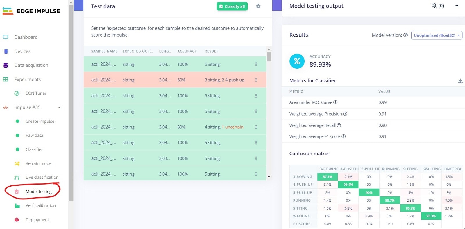 Now you can upload all activity files, including the one you used to configure the CSV-Wizard, to Edge Impulse. See the documentation for detailed steps.4. Creating, Training, and Testing the Model in Edge Impulse