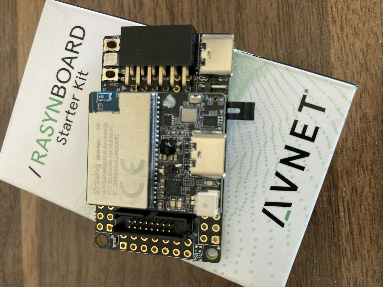 To demonstrate the concept, we’ll use the Avnet RaSynBoard, which is a low-cost, small device that contains a Renesas RA6 microcontroller, and a Syntiant NDP120 Neural Decision Processor to accelerate machine learning inferencing. The RaSynBoard is available to purchase easily directly from Avnet, and makes prototyping audio classification, accelerometer and motion detection projects simple.