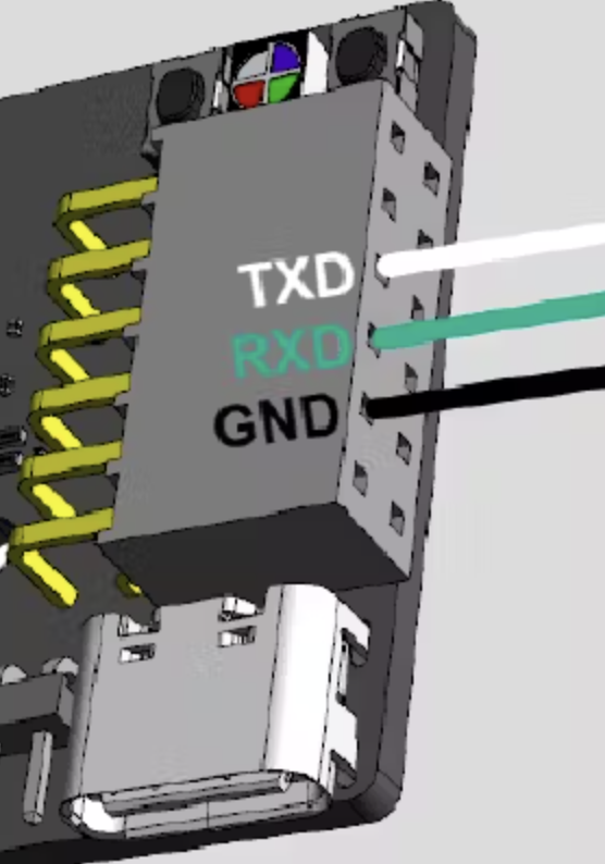 We can now power the RaSynBoard back on, the board will boot up and automatically start running the model. To see the results, we need to attach to a serial console and can view the output of any inference results. Using a standard UART adapter, connect Ground, TX, and RX to pins 2,4, and 6 on the I/O Board, as shown here: