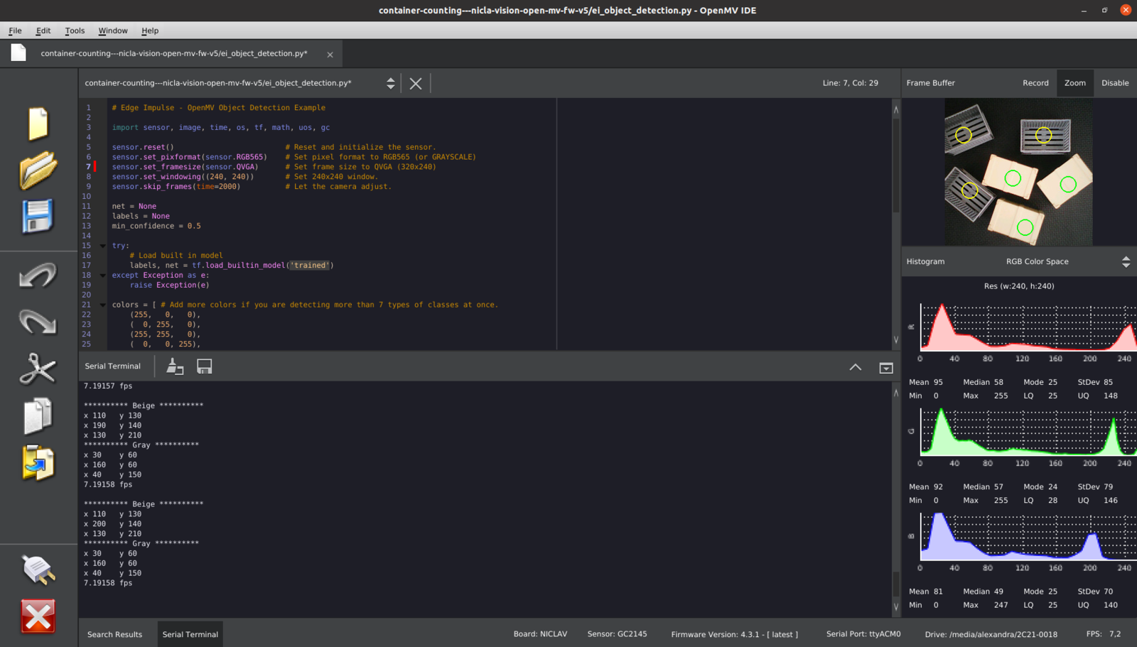 In this tutorial we’ll show you how to use Computer Vision and Machine Learning to count the number of containers that enter a warehouse in real-time. We will use the Arduino Nicla Vision camera to capture the training data and run the ML model. The Edge Impulse platform will enable us to build, train and deploy an object recognition model. We’ll explain how to use the FOMO (Faster Objects, More Objects) novel machine learning algorithm that enables object detection for highly constrained devices, such as the Arduino Nicla Vision.