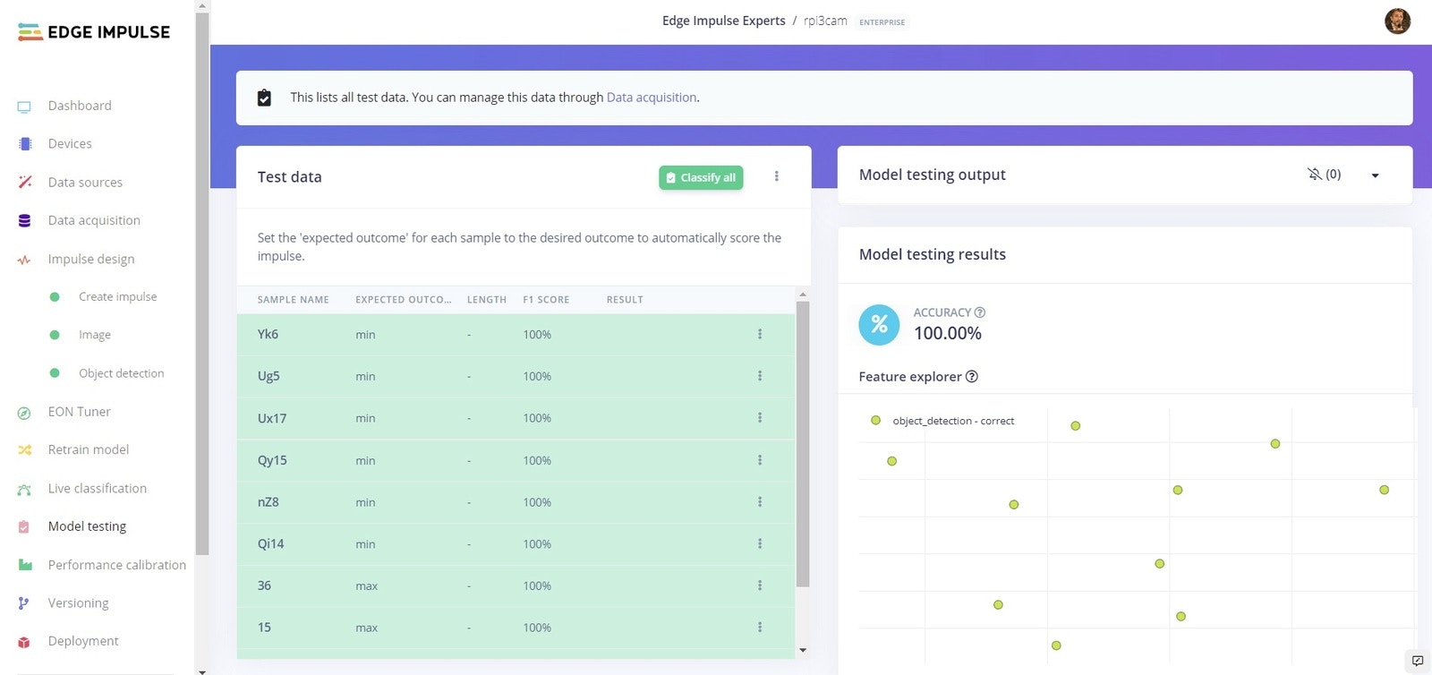 A Raspberry Pi running Linux will receive console audio out through a USB port, and record a.wav file. At the same time, a connected camera will take pictures and run inference against an Edge Impulse machine learning model. If knobs are detected in the wrong position, the recording will be automatically aborted.