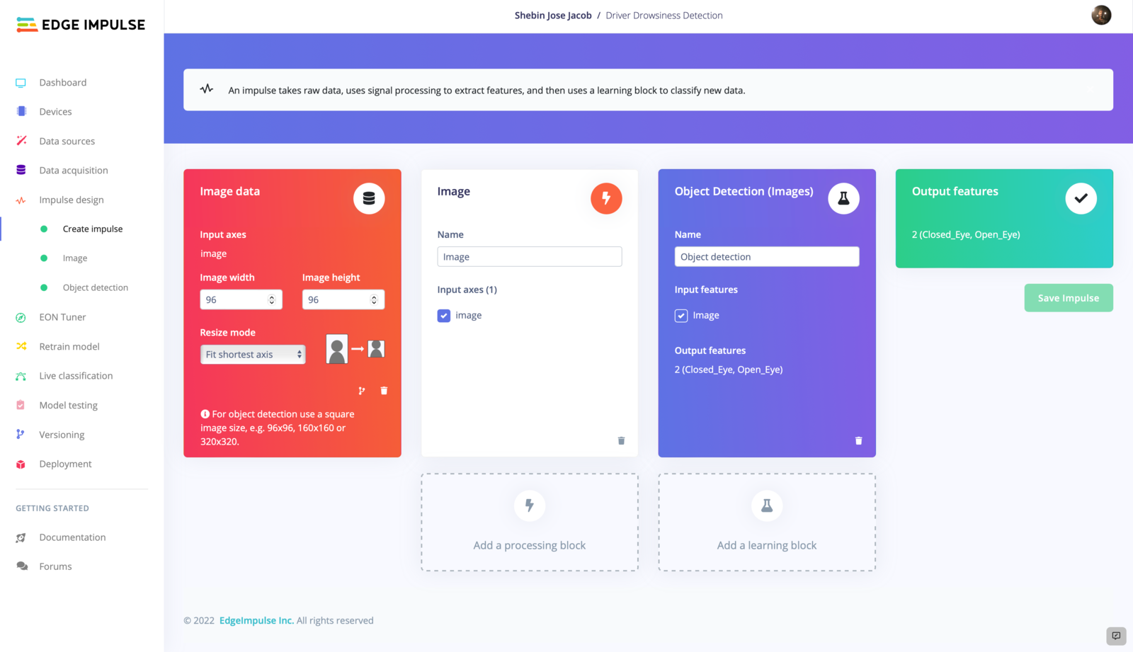 For our project, we require a high-performing model with a reliable level of accuracy. To meet these requirements, we are utilizing Edge Impulse FOMO (Faster Objects, More Objects), a machine learning algorithm specifically designed for object detection on highly constrained devices. FOMO generates efficient, faster models that are well-suited for applications where processing power and memory are limited.