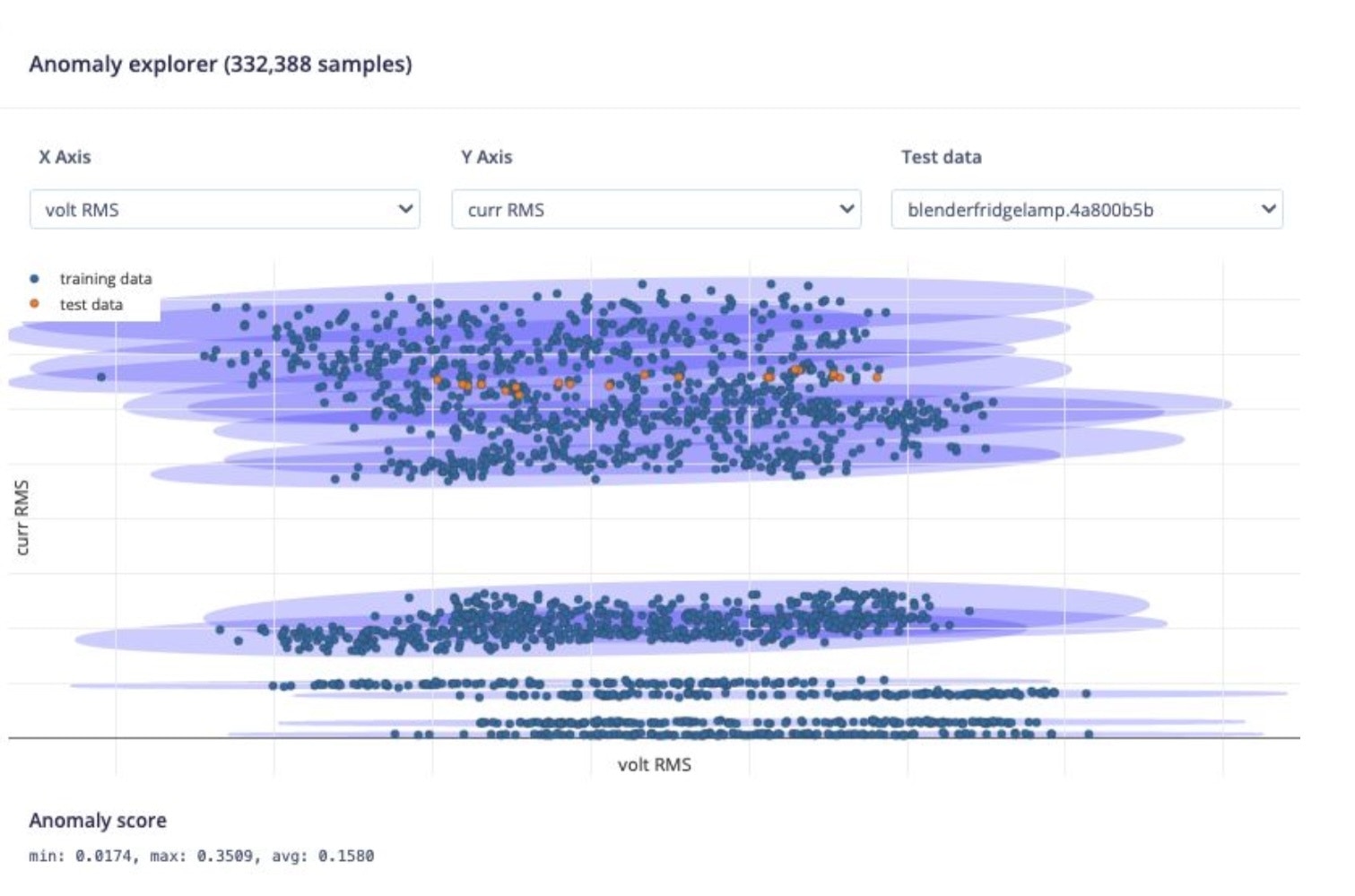 The toaster was selected to provide an idea of what anomaly detection looks like. No data is collected from the toaster (that would add 60 More combinations), and a toaster doesn’t look like our other devices. Our newest type of anomaly detection is the Gaussian mixture model. Through this model, you can identify the probabilistic bands of where the data shows up. If anything falls out of this band in any of these regions, it has a higher anomaly score because it’s unlike the sampled data.