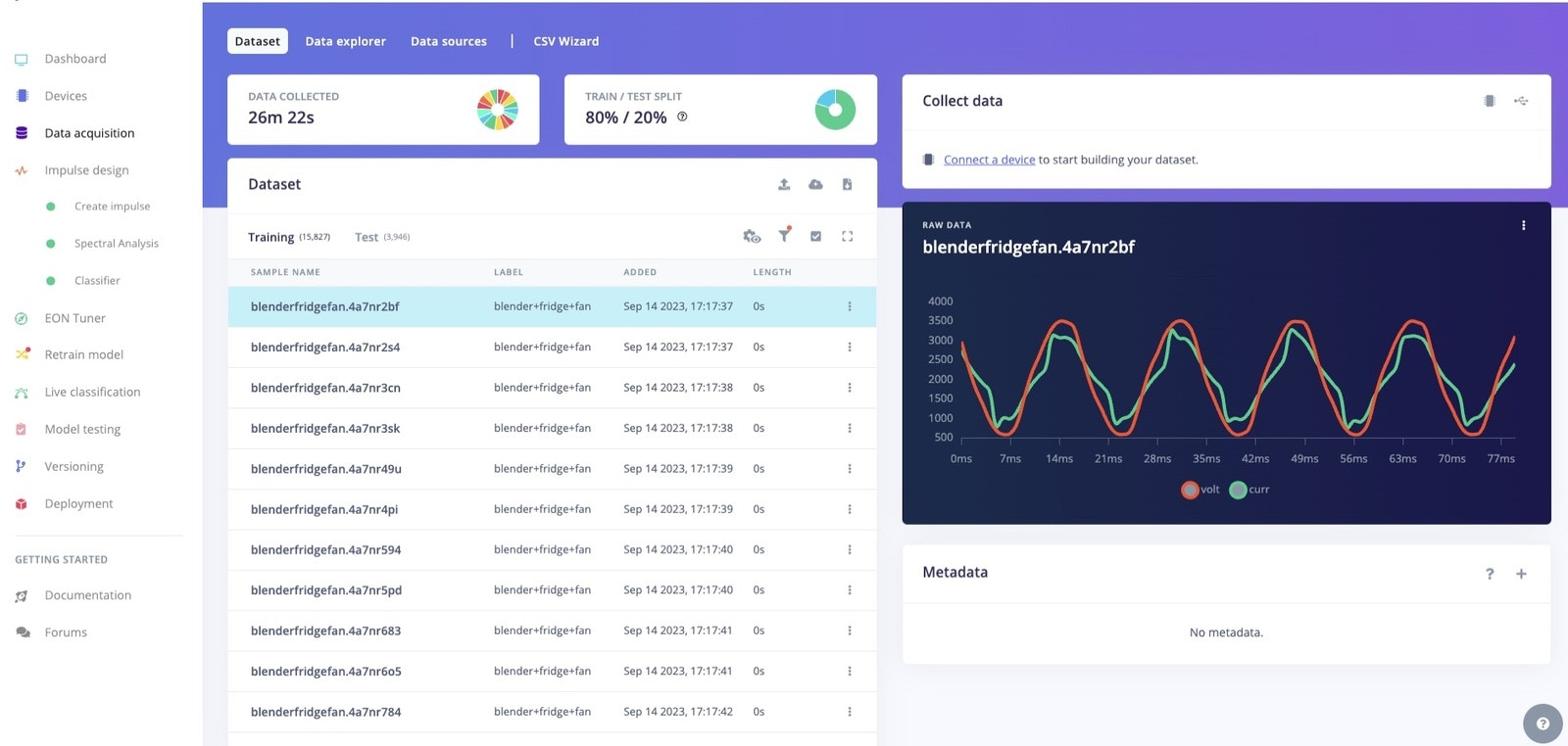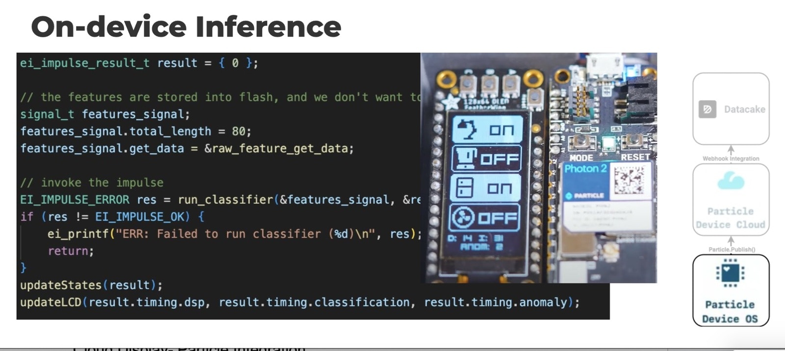 The demand for efficient energy consumption management has never been greater. From enhancing the operational efficiency of utility grids, to ensuring the well-being of individuals in healthcare facilities, or even to providing predictive maintenance to mitigate preventable failures in industrial environments, the insights derived from monitoring energy consumption are invaluable. This project explores the transformative power of edge machine learning in deciphering energy consumption patterns, providing a step-by-step guide on how to create an energy monitoring solution that can individually identify which devices are being used on a shared AC line, based on energy-draw signatures. Current products on the market that provide this feature require an individual connection to each device, typically in the form of a smart plug, which is sufficient for basic consumer functions but not feasible for more complex use cases. With Edge Impulse and the Particle Photon 2, the same features are amplified, requiring just one measurement location for a power strip, circuit breaker, or even entire homes and buildings.Why Use Edge AI for Energy Monitoring?
