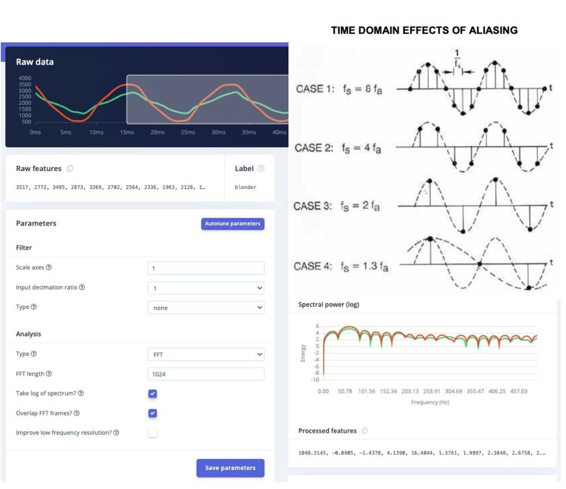 Once the Impulse design and model training phases are complete, it’s time to move into spectral analysis, which pulls out the valuable information about which devices are on. In this case, we’re interested in the harmonics, up to the seventh or about 420 Hertz (in the United States). Harmonics, based on the Nyquist theorem, dictate that it should be sampled twice. If it’s not, you’ll lose part of the signal and won’t capture that frequency.