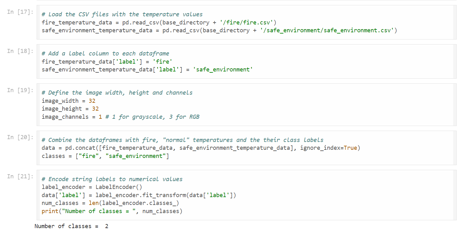 fire class. I replaced half of the images and temperature values with the one’s obtained in the safe environment class. In this case, the model was able to better understand the relationship between the two inputs. A fire can be seen but the temperature value being recorded is as low as 20 degrees. In this case, the temperature sensor may not be within a good range of the fire. At the same time in an environment with fire, no flames may be seen but the temperatures may be as high as 70 degrees. The flame may not be detected by the camera but the high temperature can be felt.