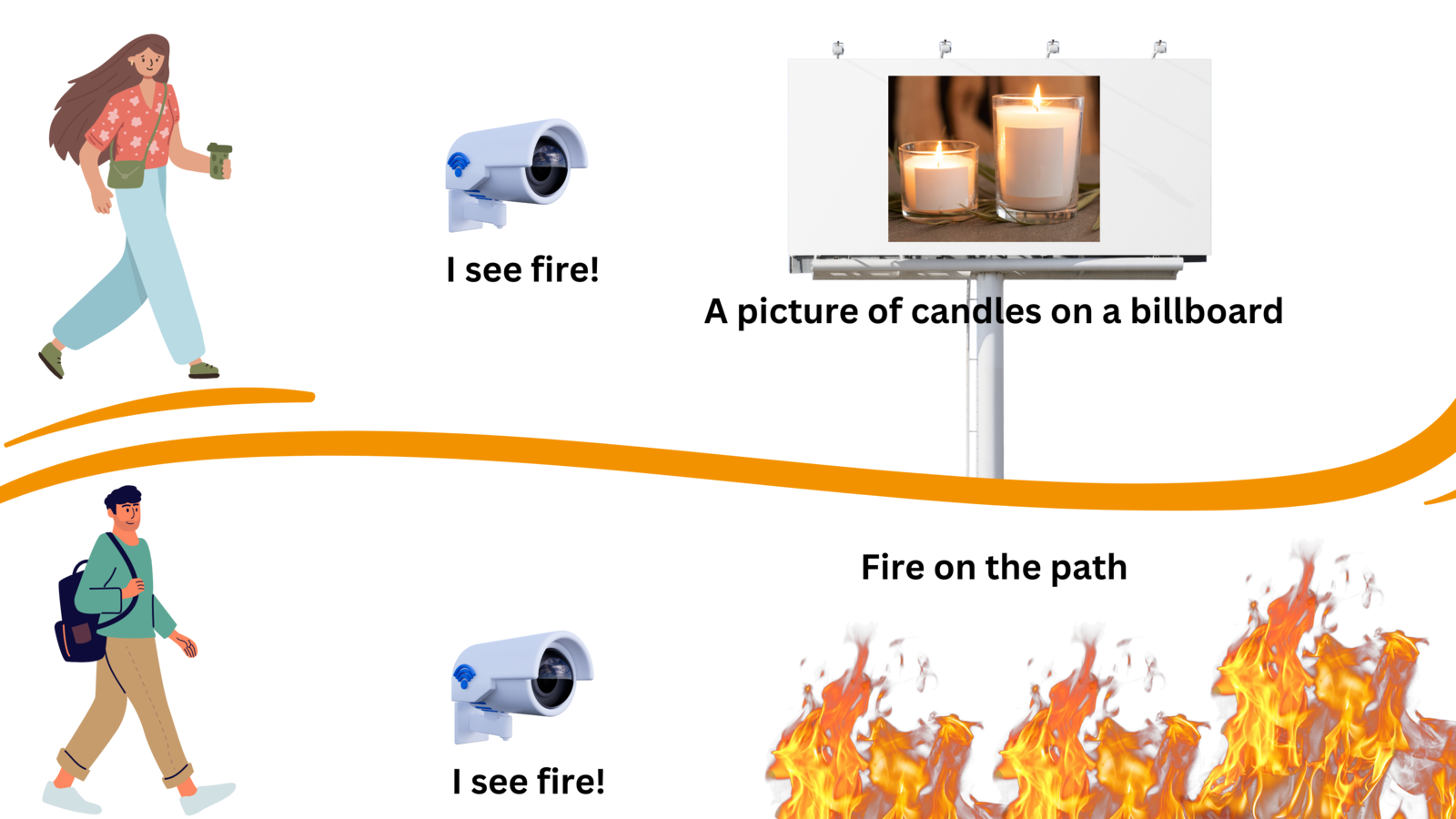 To understand sensor fusion, let us consider the image below. In the image, we can see two different scenarios. In the first, a lady is walking on the road and there is a billboard which shows a picture of candles. In the next scenario, we see a gentleman walking along a road that has fire. In these two situations, it is clear that the gentleman is walking on a dangerous path since there are “real” flames. The lady will simply look at the stunning candles, and continue walking.
