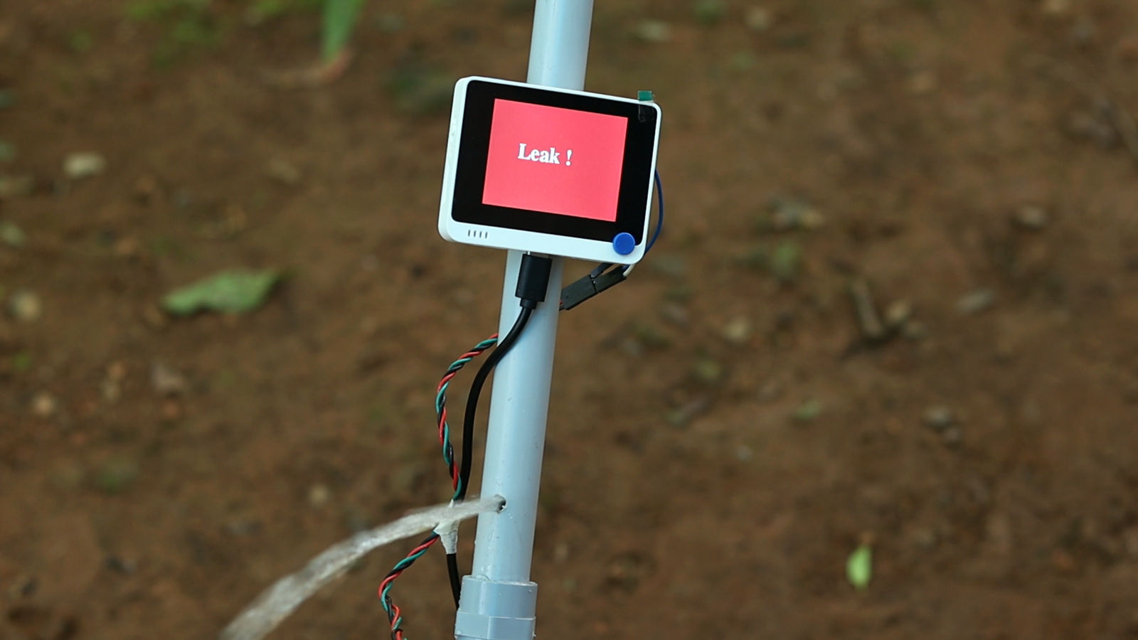 After the deployment, now we have a system consisting of a Wio Terminal, Flow Rate Sensor, and AI model that can detect a possible leak in the pipeline. The three modes of output are shown below.