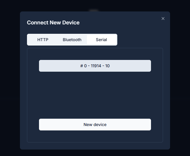 - Click New Device → choose the COM port where your module is connected.