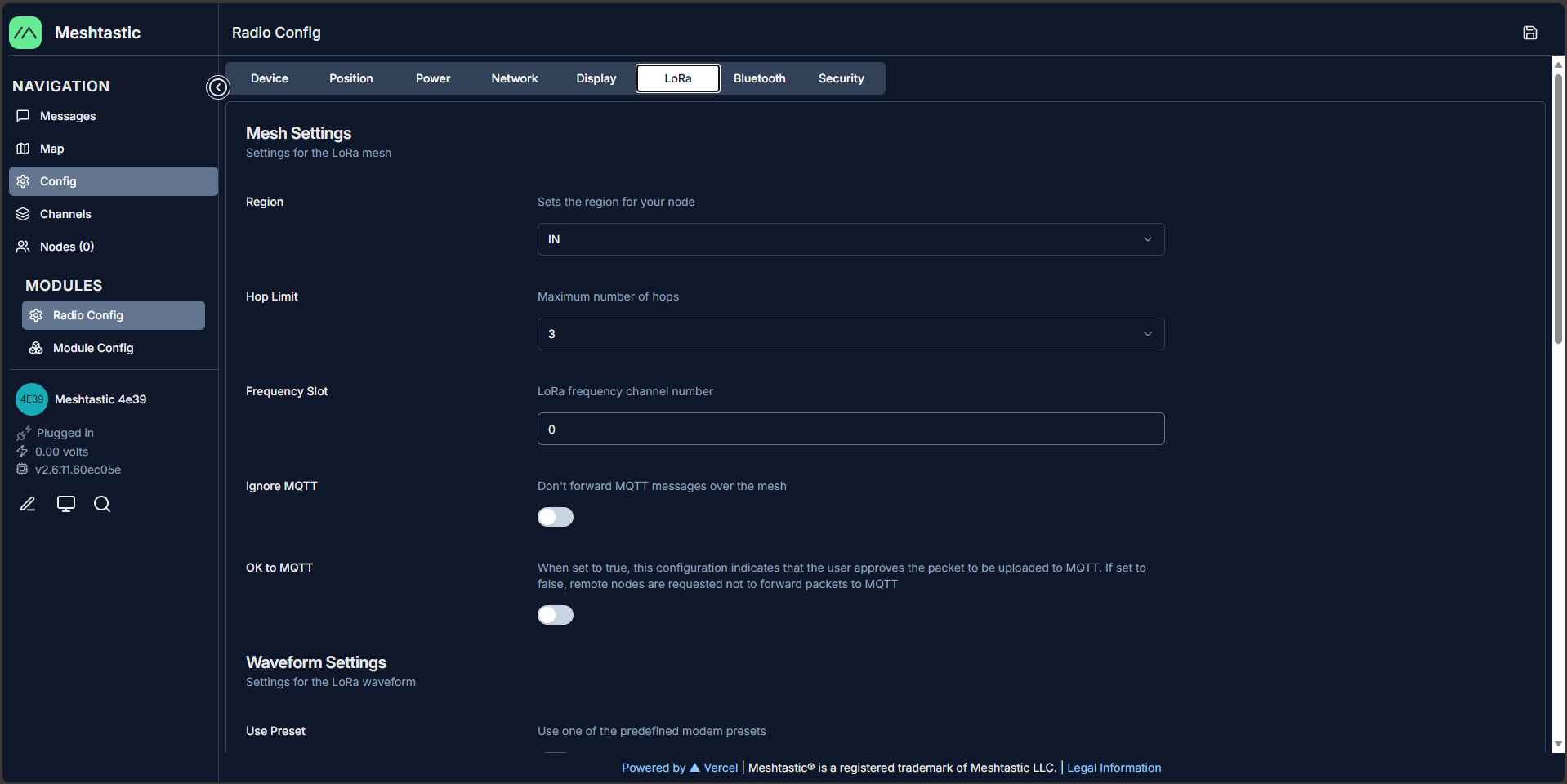 - Go to Config → LoRa.