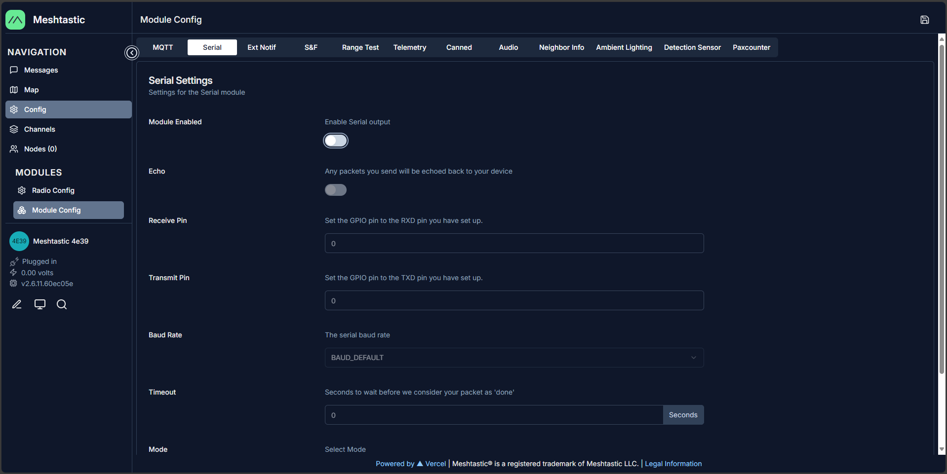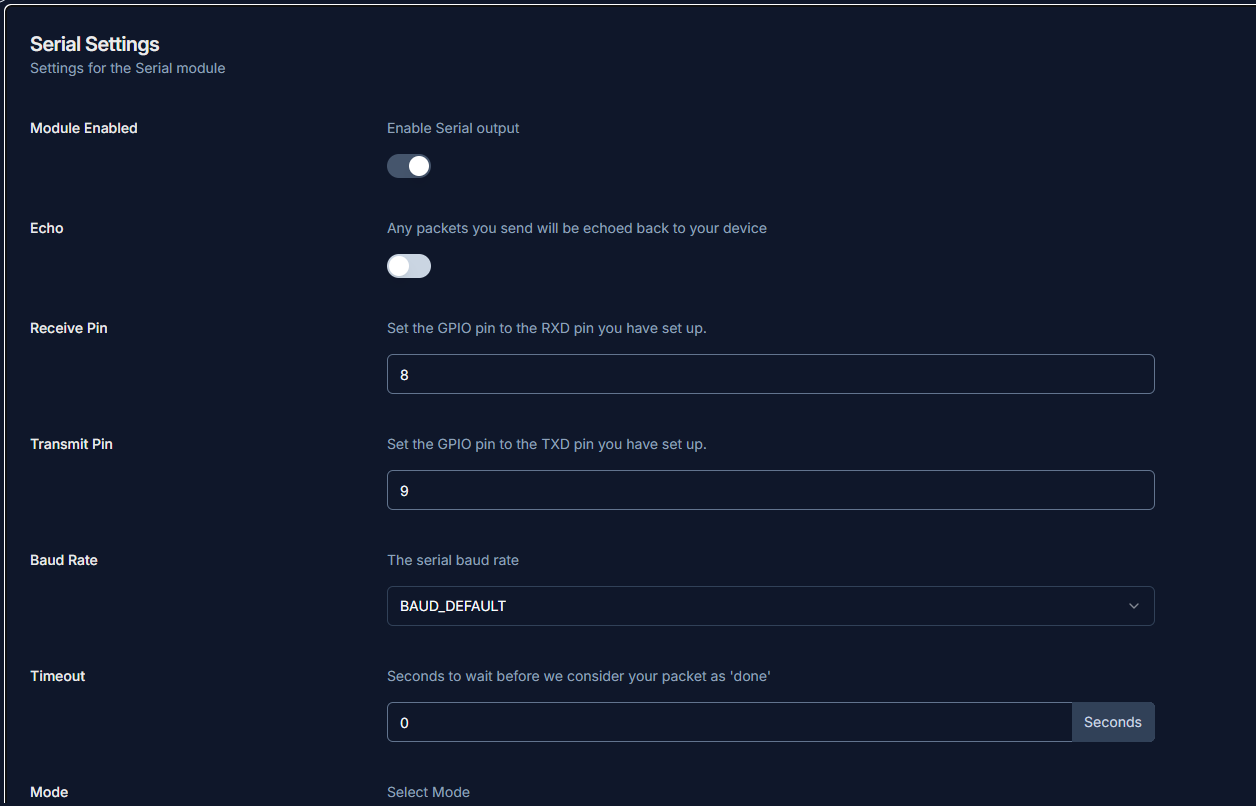 - Go to Module Config → Serial.