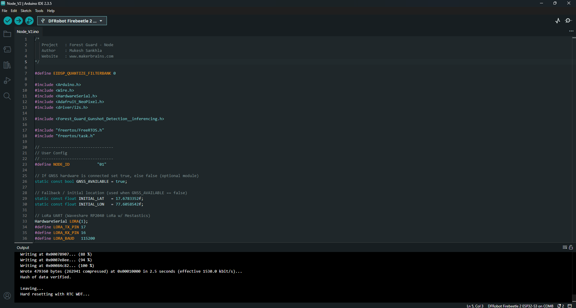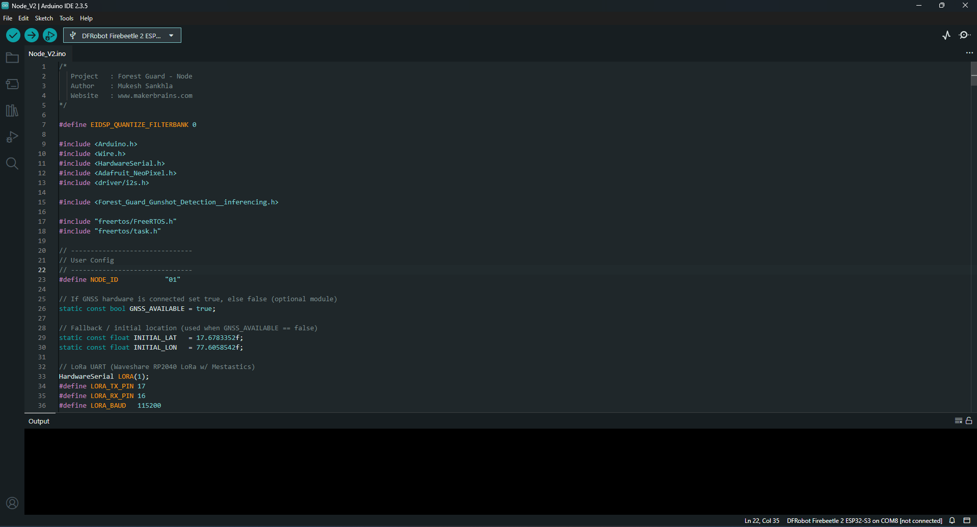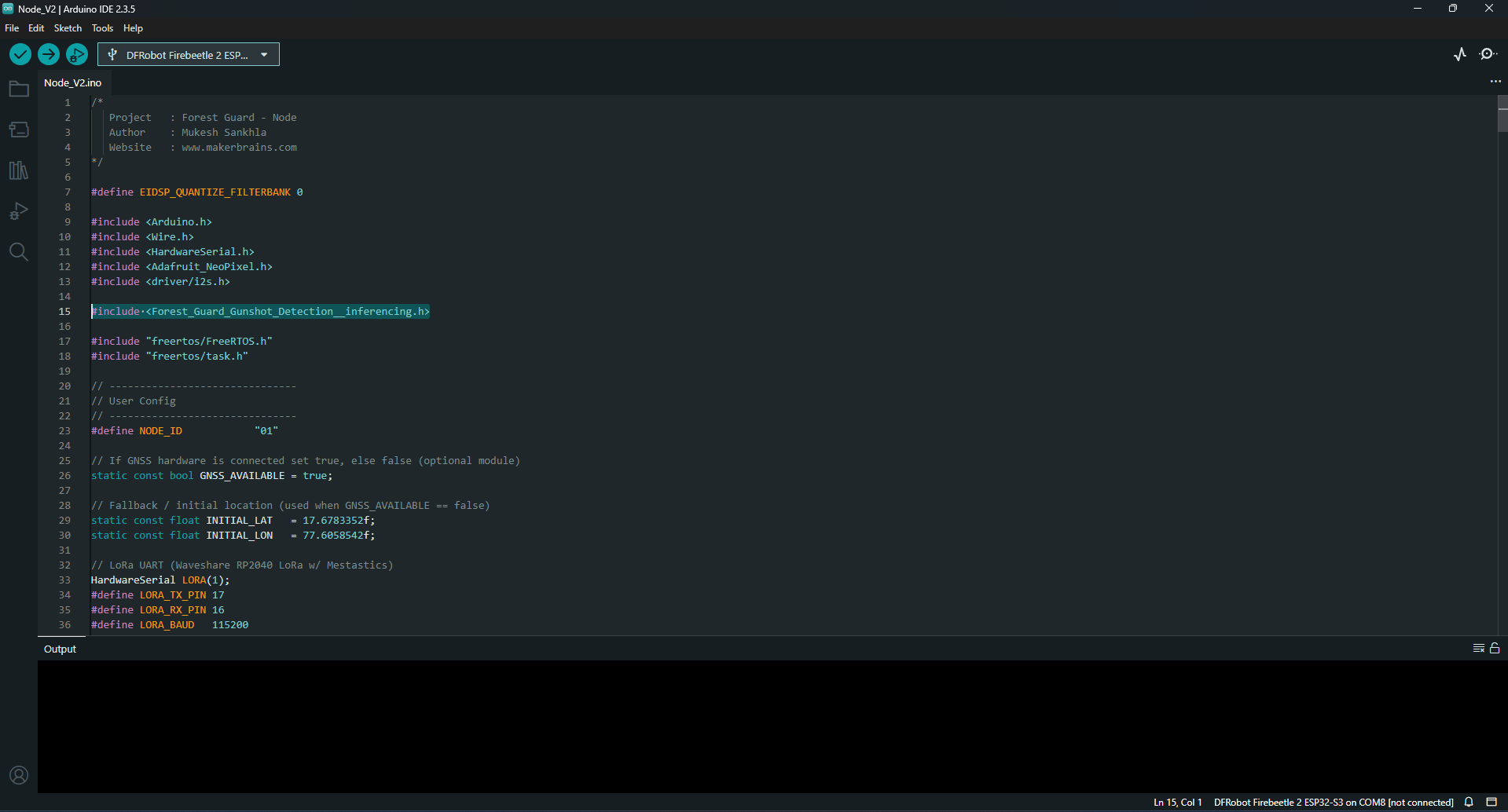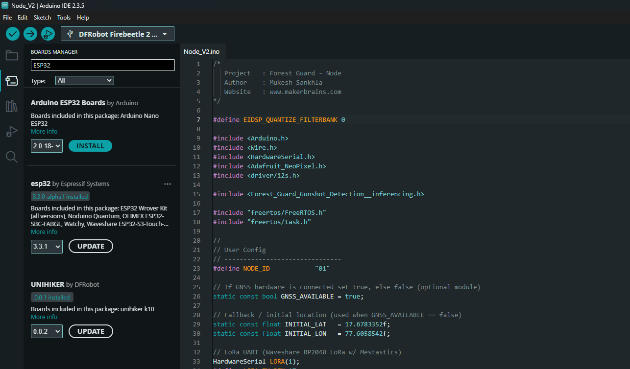 Instead of relying on costly connectivity, our system builds a solar-powered sensor mesh using LoRa Meshtastic. Each node is intelligent at the edge, capable of running AI models locally to detect events like gunshots via an onboard microphone and Edge Impulse classification. Coupled with environmental sensors and a smoke detector, the system can issue real-time alerts about fire outbreaks or human intrusion.