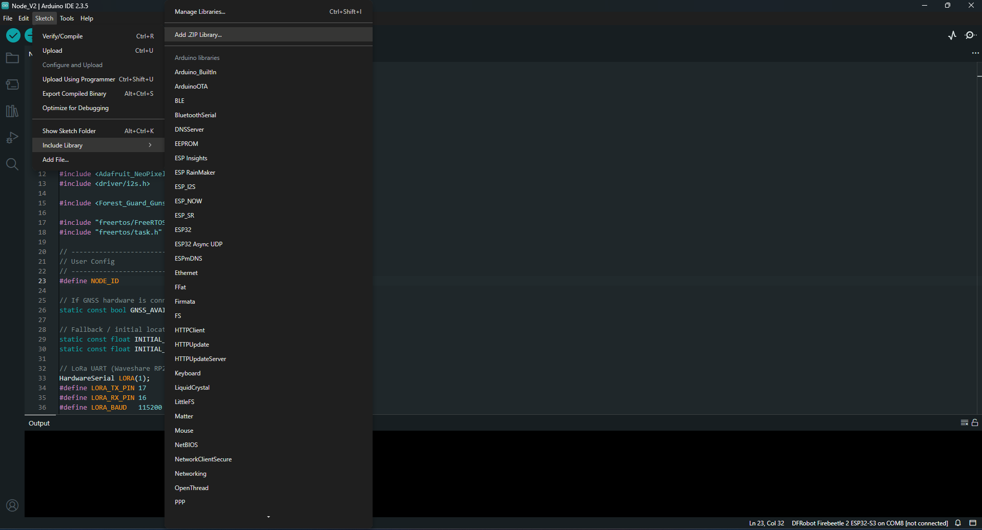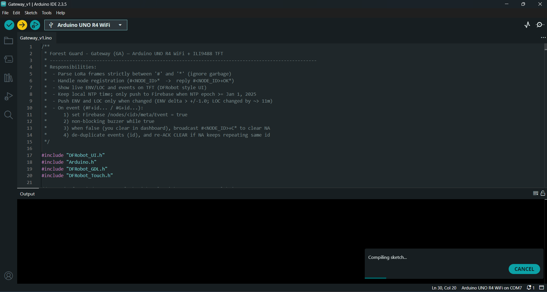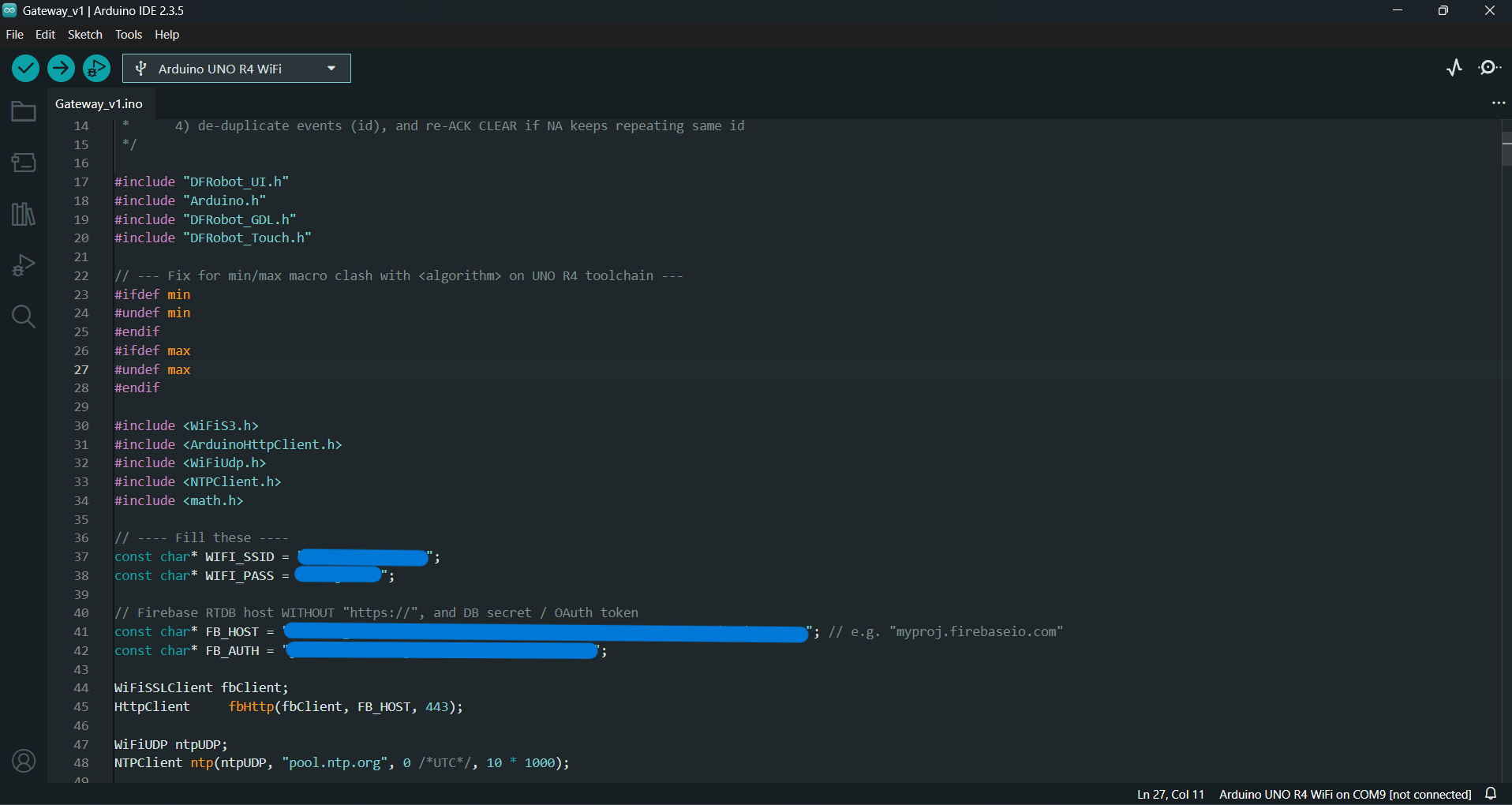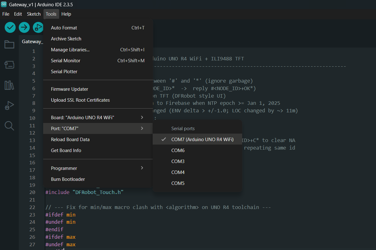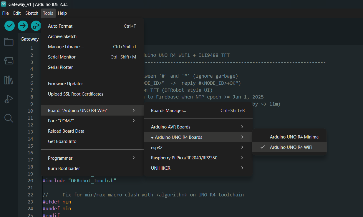 - Open Gateway_V1.ino in the Arduino IDE.