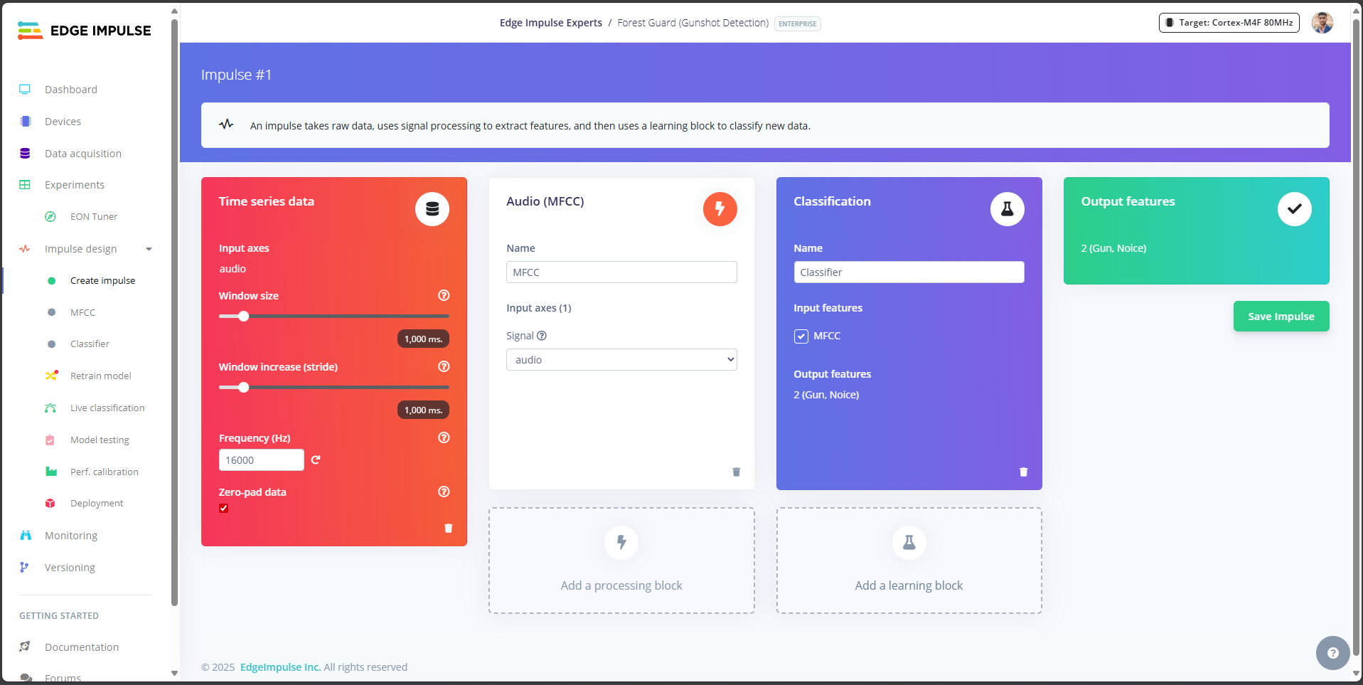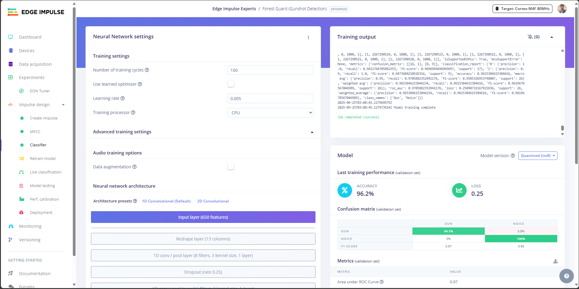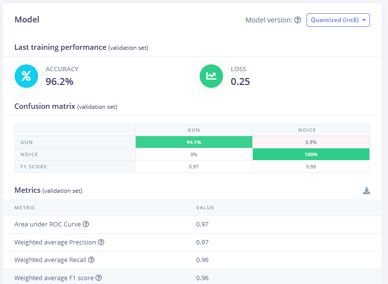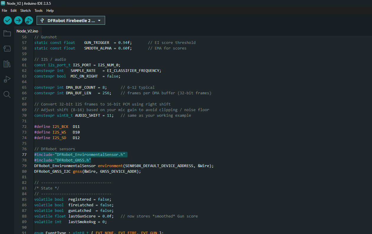 - Gunshot: Edge Impulse score crosses threshold (e.g., ≥0.90).