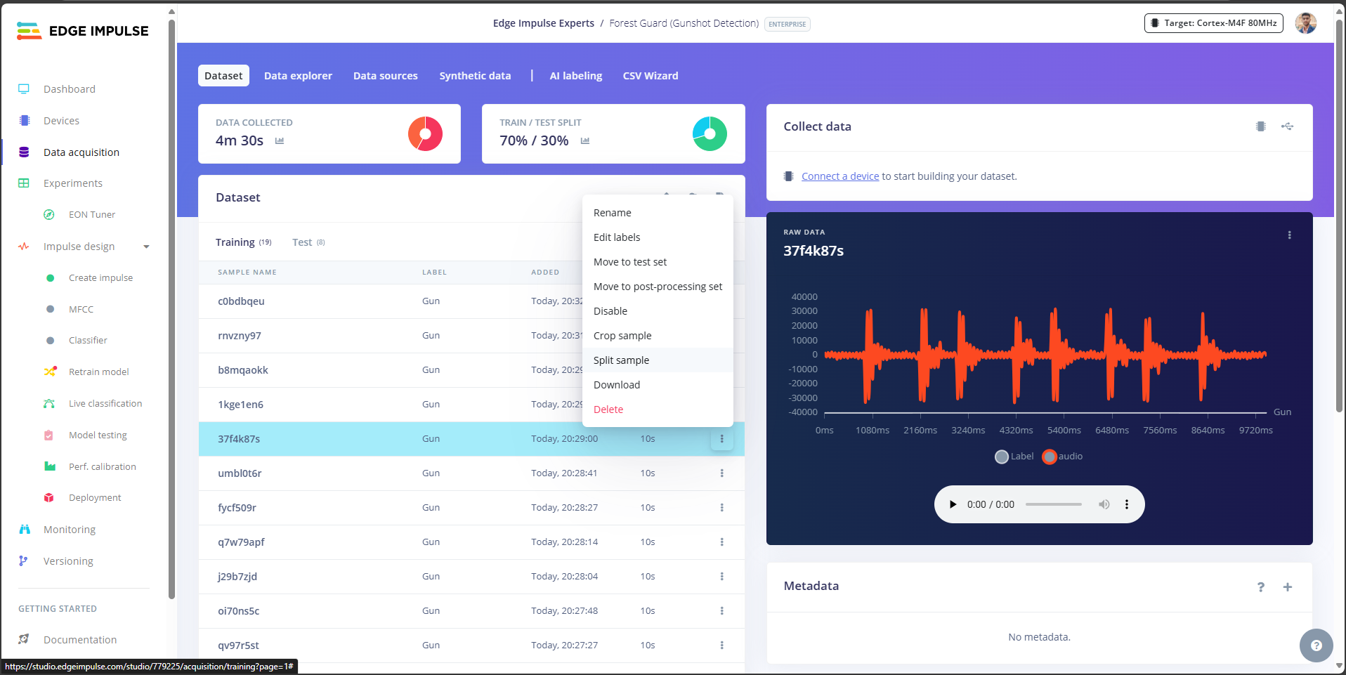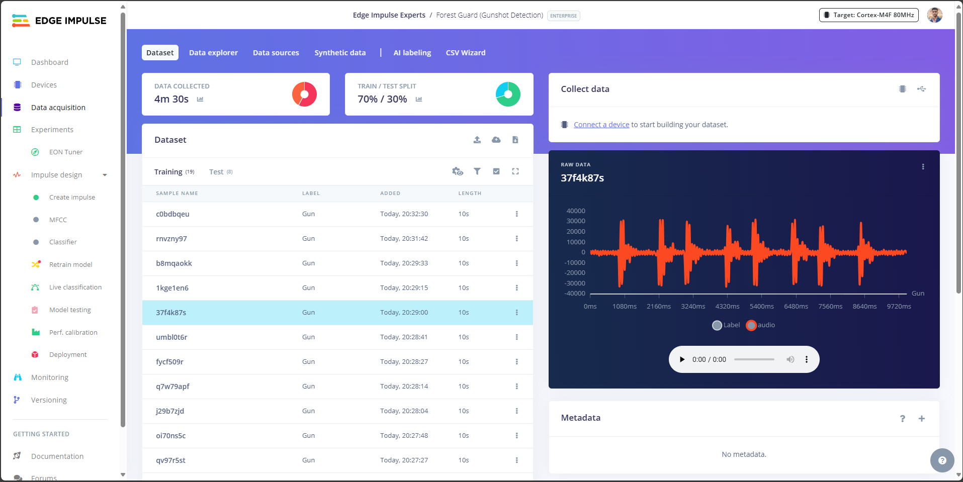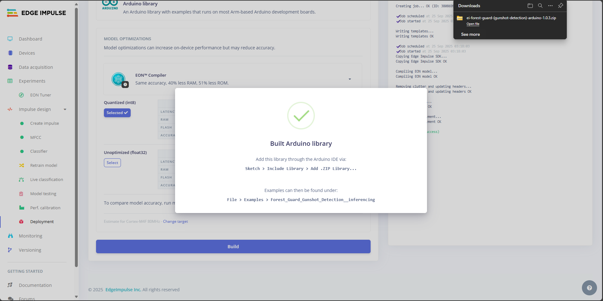- Gunshot: Edge Impulse score crosses threshold (e.g., ≥0.90).