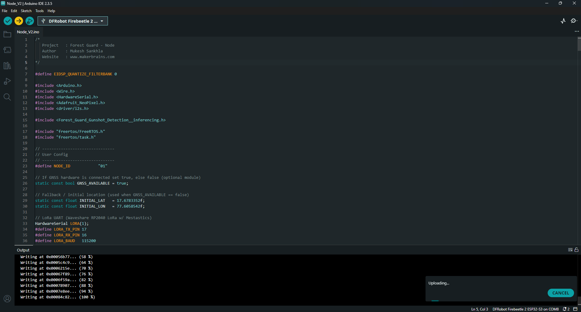 - Select Target Device: RP2040 LoRa.