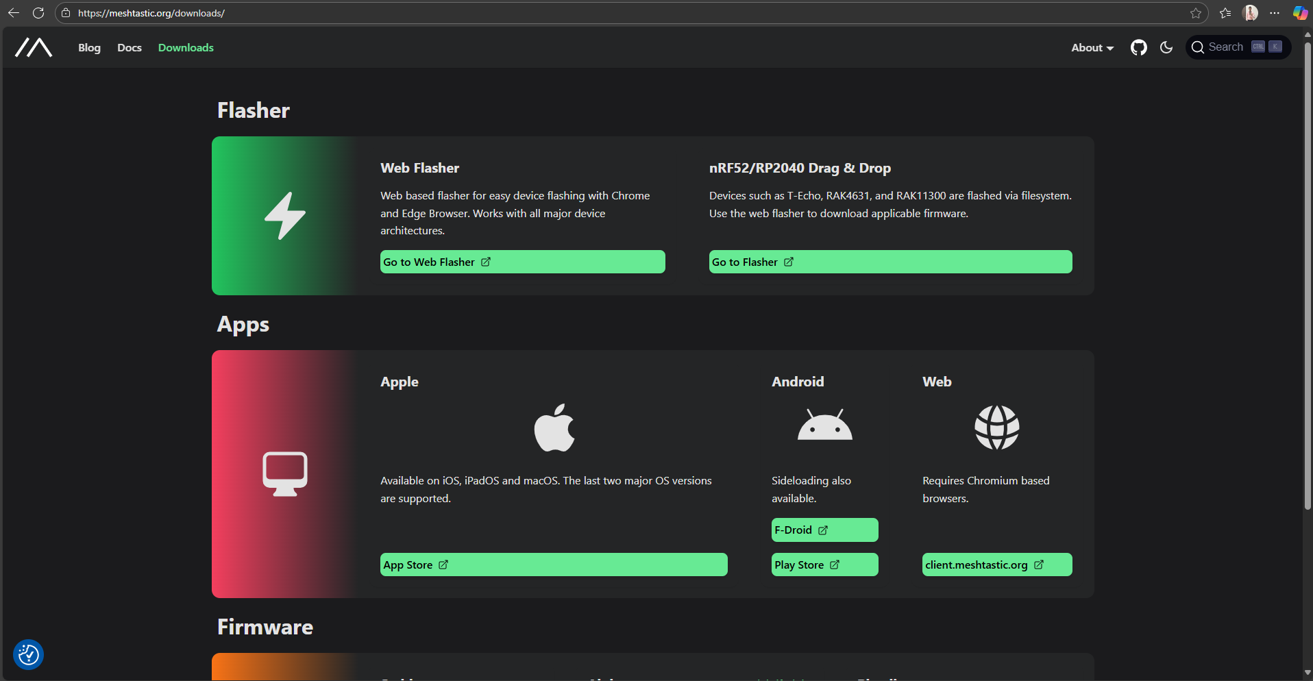 We’ll flash the Meshtastic firmware onto the RP2040 LoRa modules and configure them for UART communication. ⚠️ Important Safety Note: Always connect the antenna before powering on the LoRa module to prevent damage.- Go to Meshtastic Downloads.