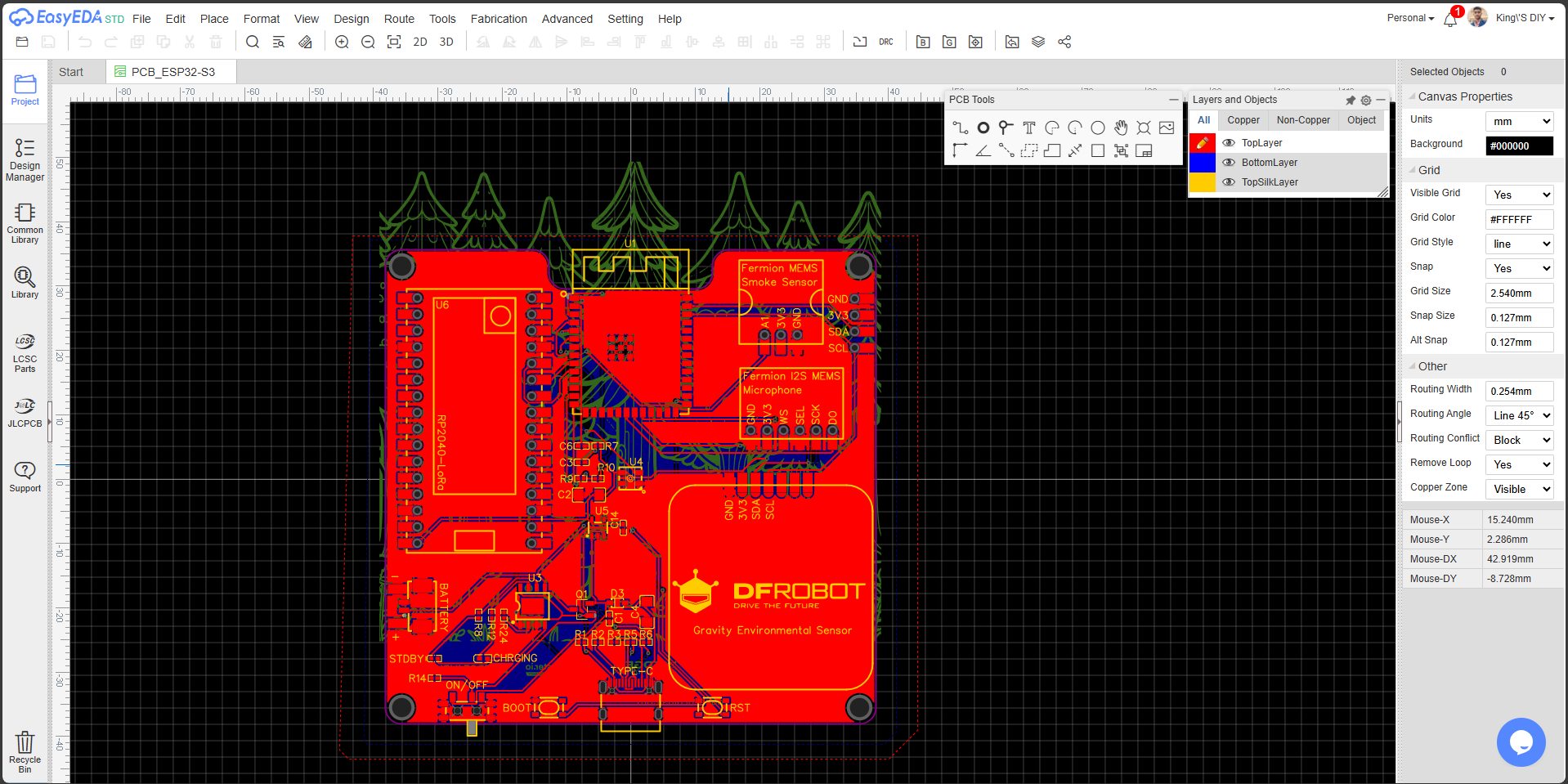 To make the Forest Guard Node truly field ready, I designed a custom enclosure in Fusion 360. This was done by first importing all the standard components and then exporting the PCB’s 3D model from EasyEDA into Fusion 360, ensuring that every cutout and mount point lined up perfectly.