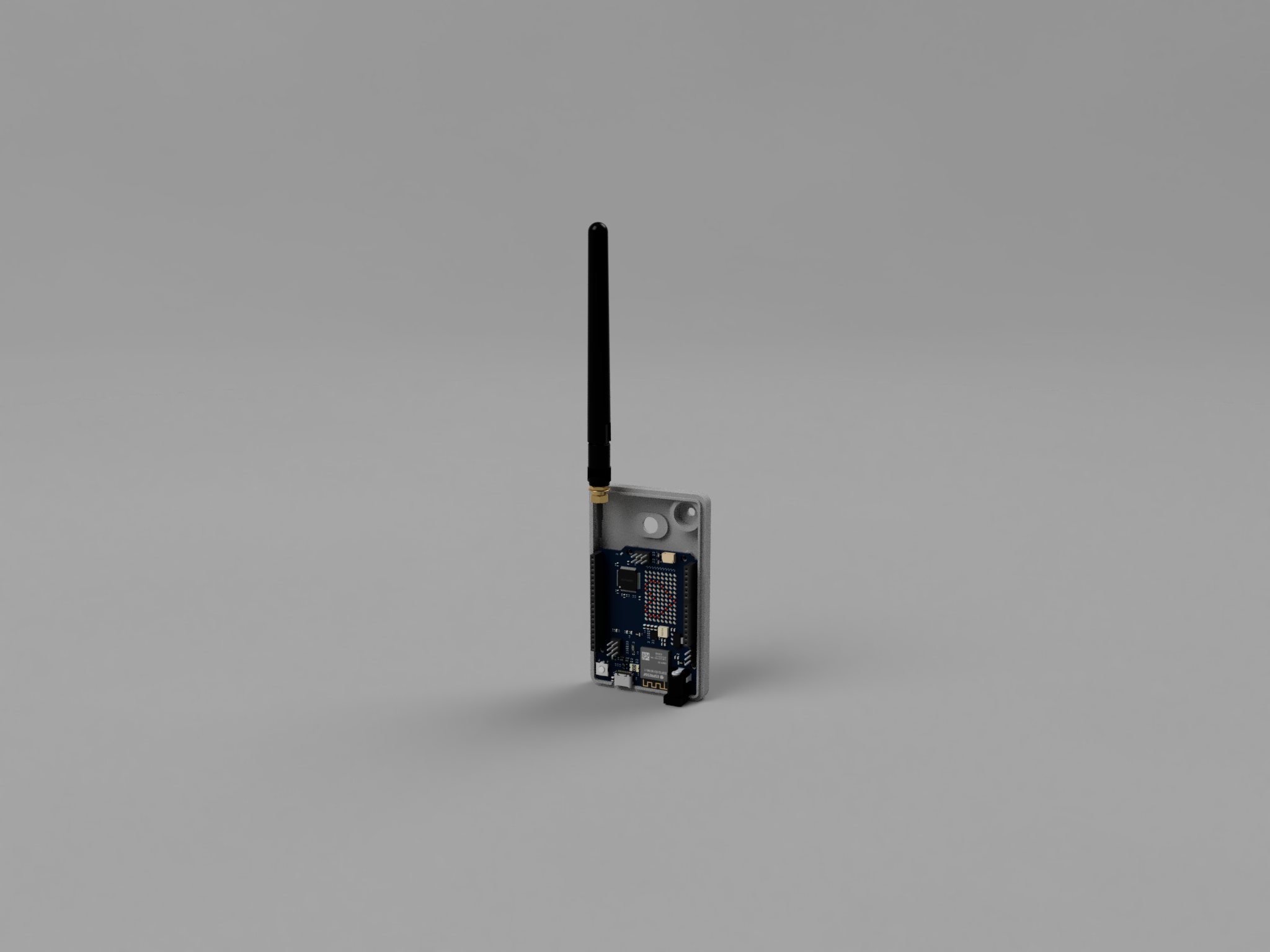 - Housing - Holds the custom PCB, with cutouts for the Type-C port, push switch, and top-mounted LoRa antenna. A large center cutout allows light from the onboard RGB LED to pass through.